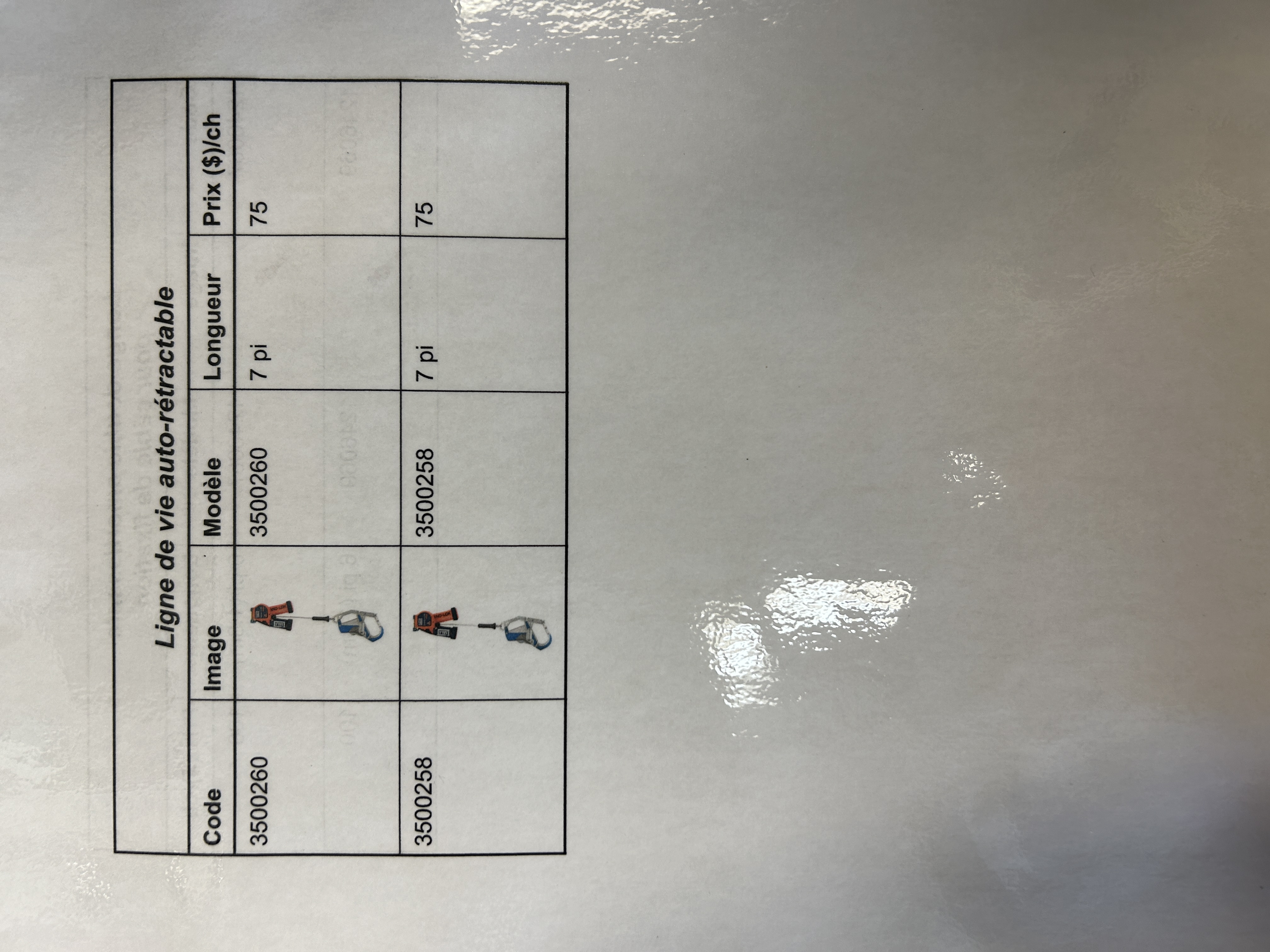 Ligne de vie auto-rétractable Plusieurs modèle en inventaire. Longueur: 7 pi à 9 pi