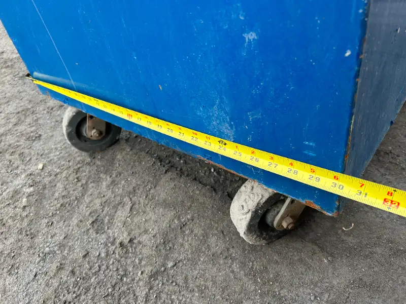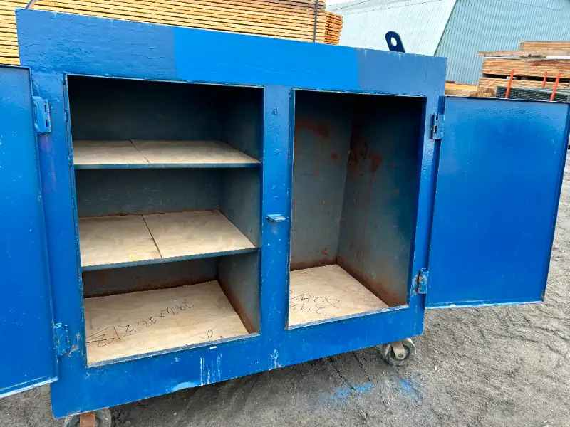Coffre de chantier sur roues. 60 po x 30 po x 55 po 1/2 de hauteur. Peut se barrer avec un cadenas.