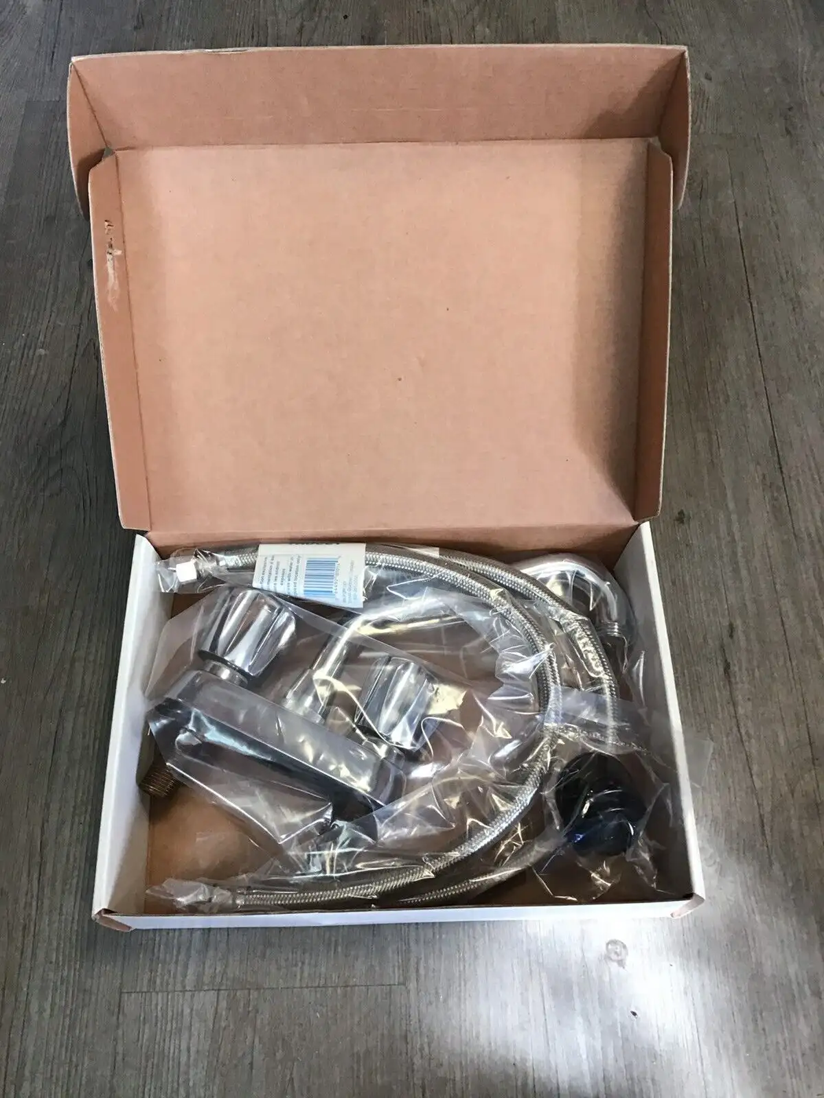 Robinet de marque MAAX (neuf). Vient avec 2 tuyaux flexibles en stainless de 20" de longueur. Distance des trous centre-centre: 4".
