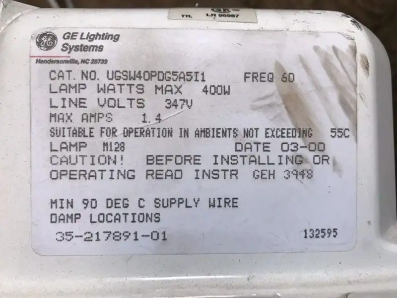 Lumière 400 watts. 347 volts. 24"de hauteur, 26"de hauteur. Plusieurs autres modèles en inventaire. 347 volts: 25$/chacune 120 volts: 40$/chacune