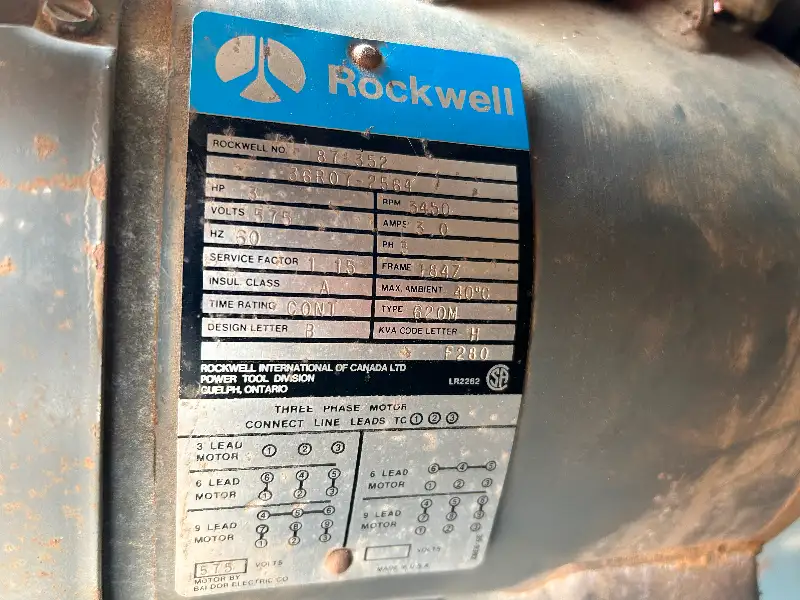 Banc de scie Rockwell Moteur 3 hp, 575 volt