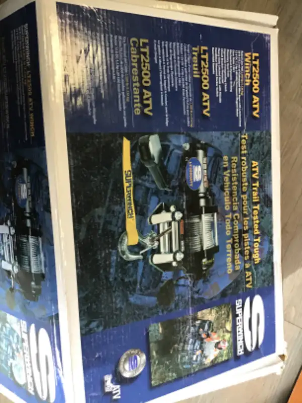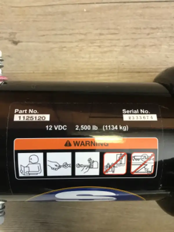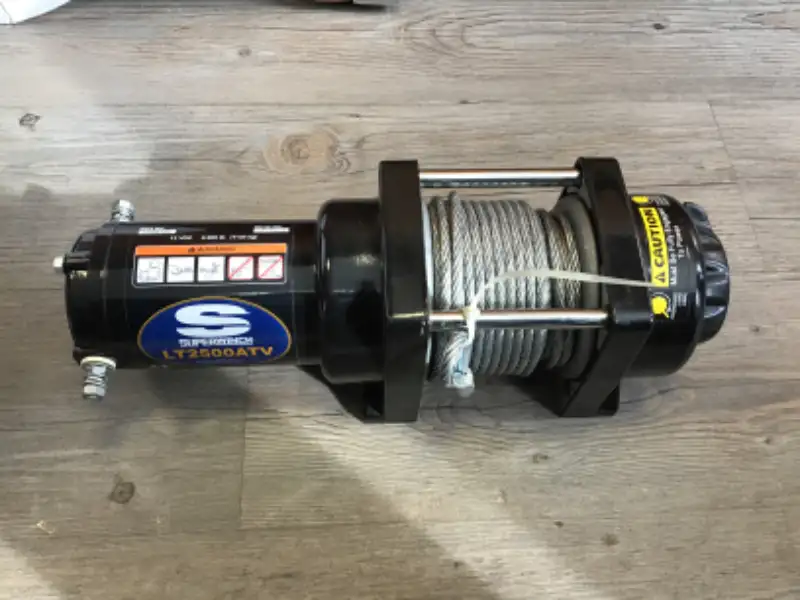 Treuil (winch) 2500 livres. 12 volts DC. Moteur 1.2 HP. Câble métallique galvanisé de 50 pieds.