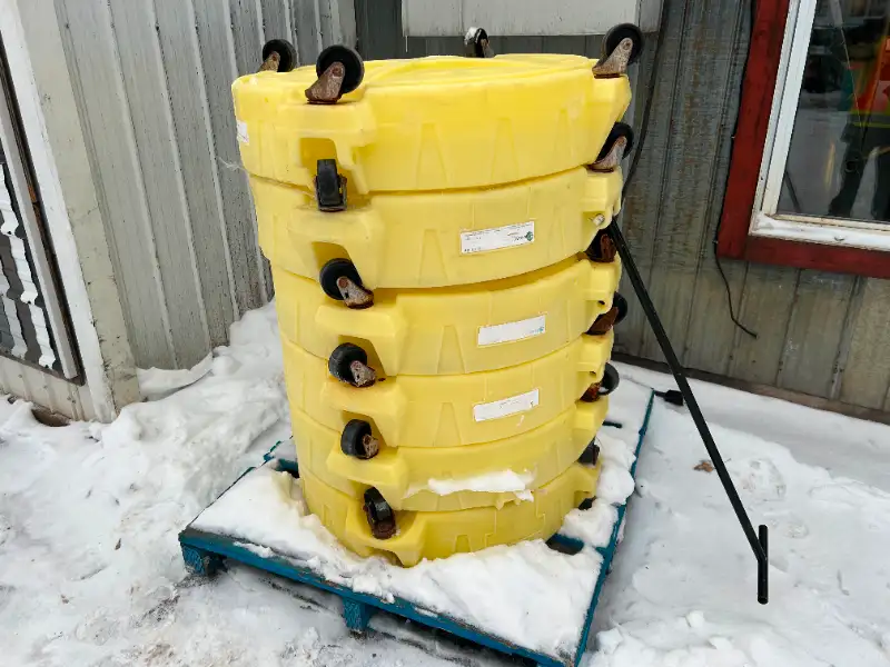 Bacs de rétention jaune à roulettes pour baril 95$/chaque 28 po x 6 po 1/4 de profondeur