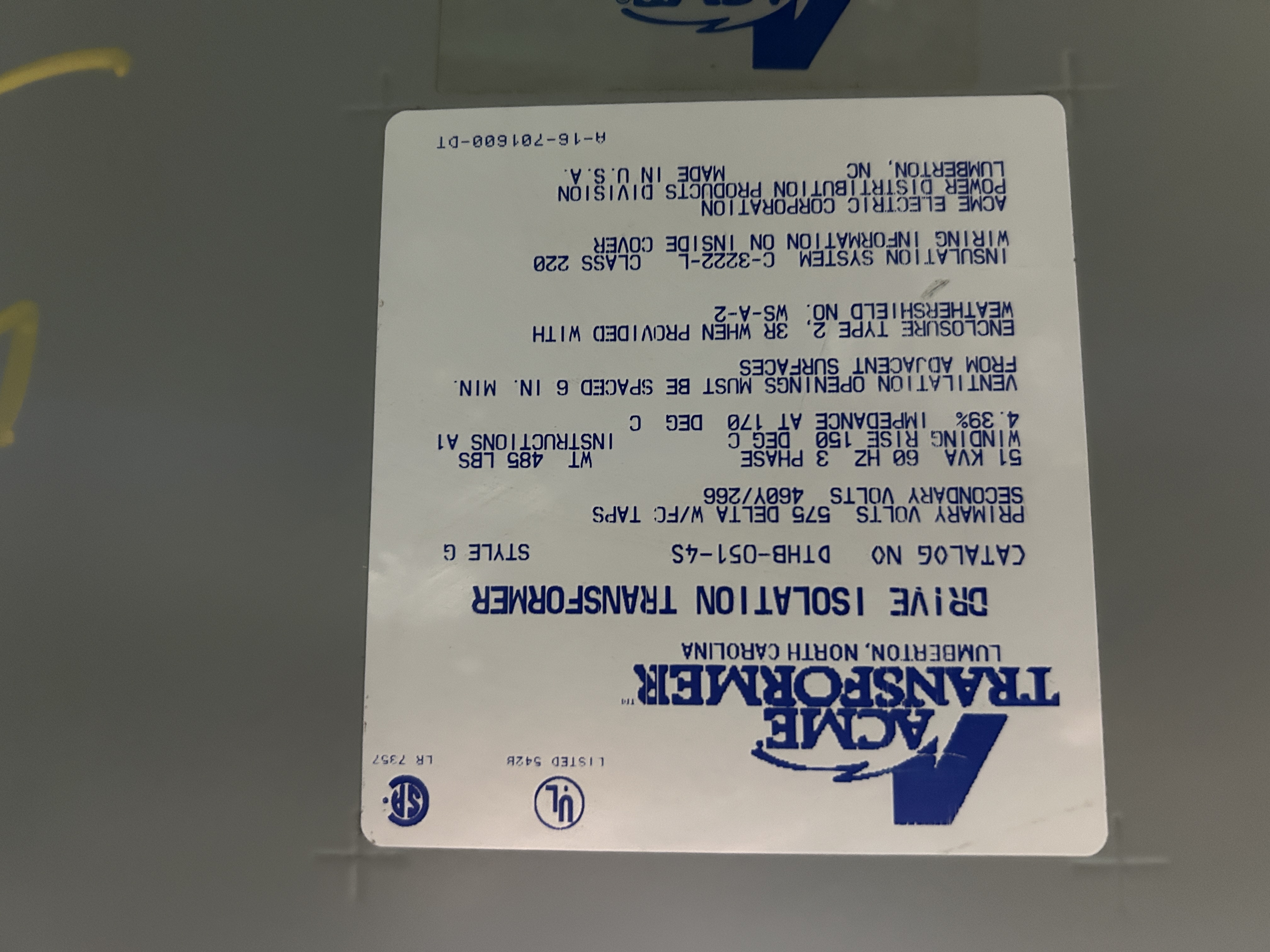 Transformateur Bemag 51 kva 600, 460y/266, 3 phase, isolé