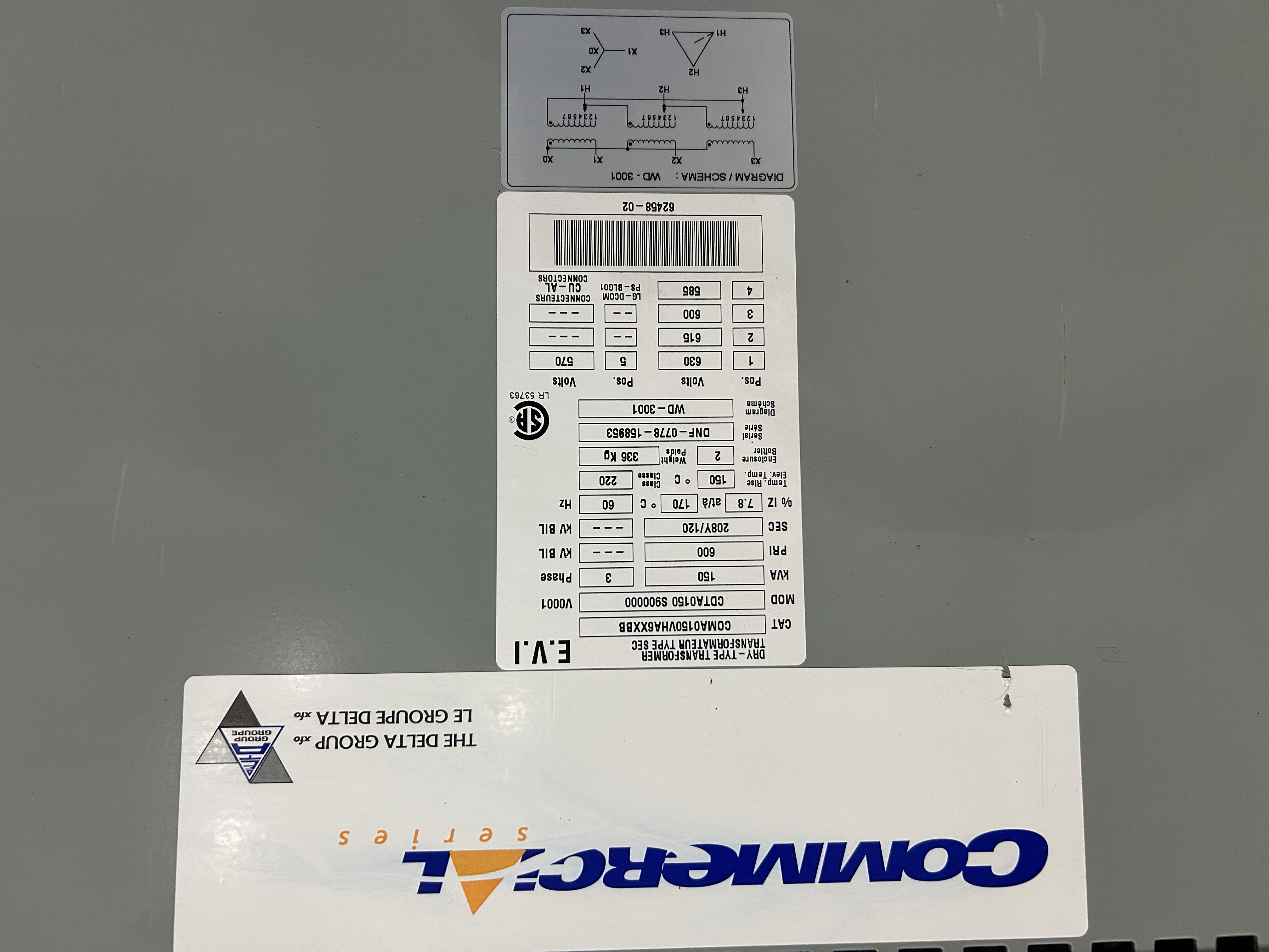 Transformateur 150 kva 600, 208y/120 Delta E.V.I.