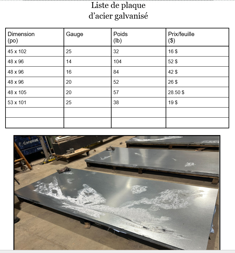 Feuille d'acier galvanisé avec tâche blanche. Plusieurs dimension de disponible.