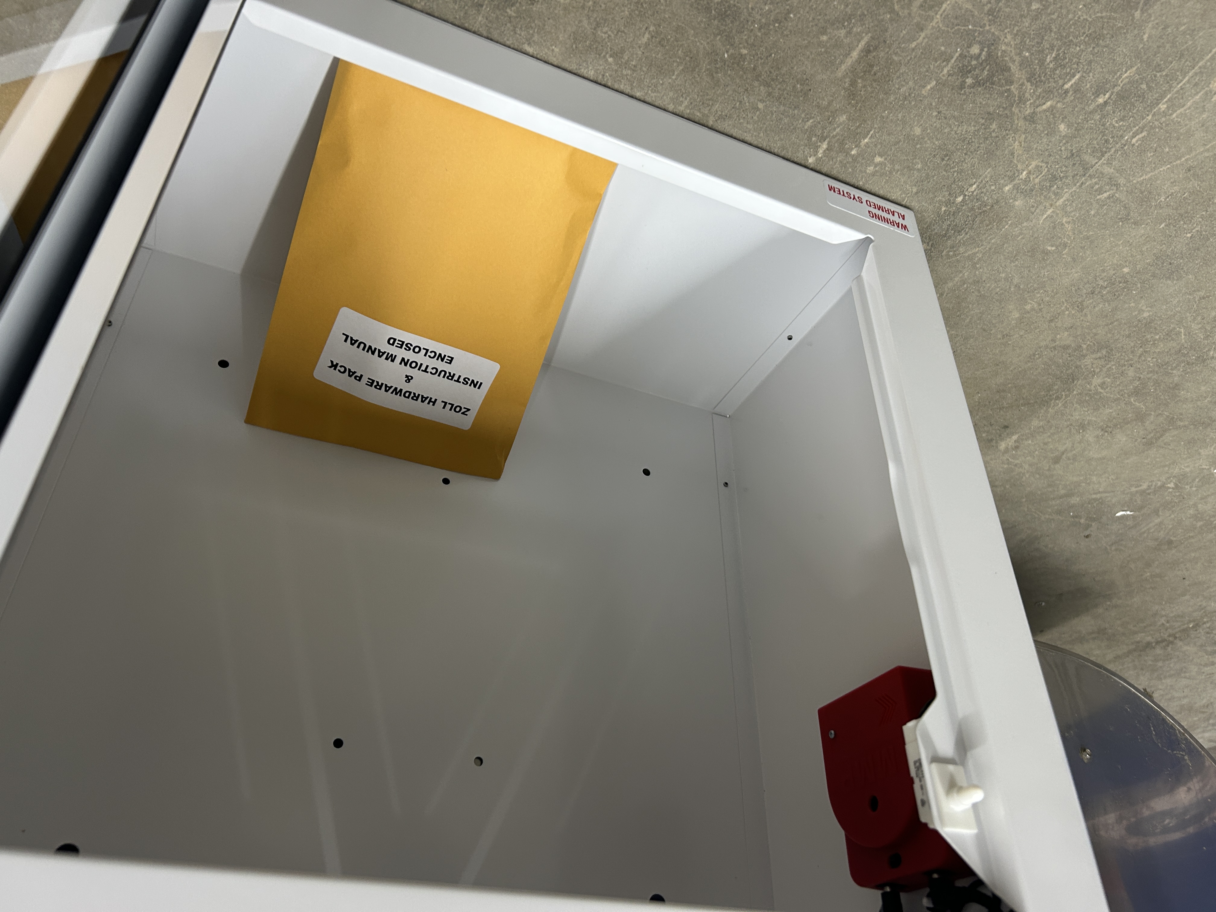 Armoire murale métallique/ Cabinet pour AED avec alarme Dimension: 17 po 1/2 x 9 po x 17 po 1/2 Modèle: ZOL80000855