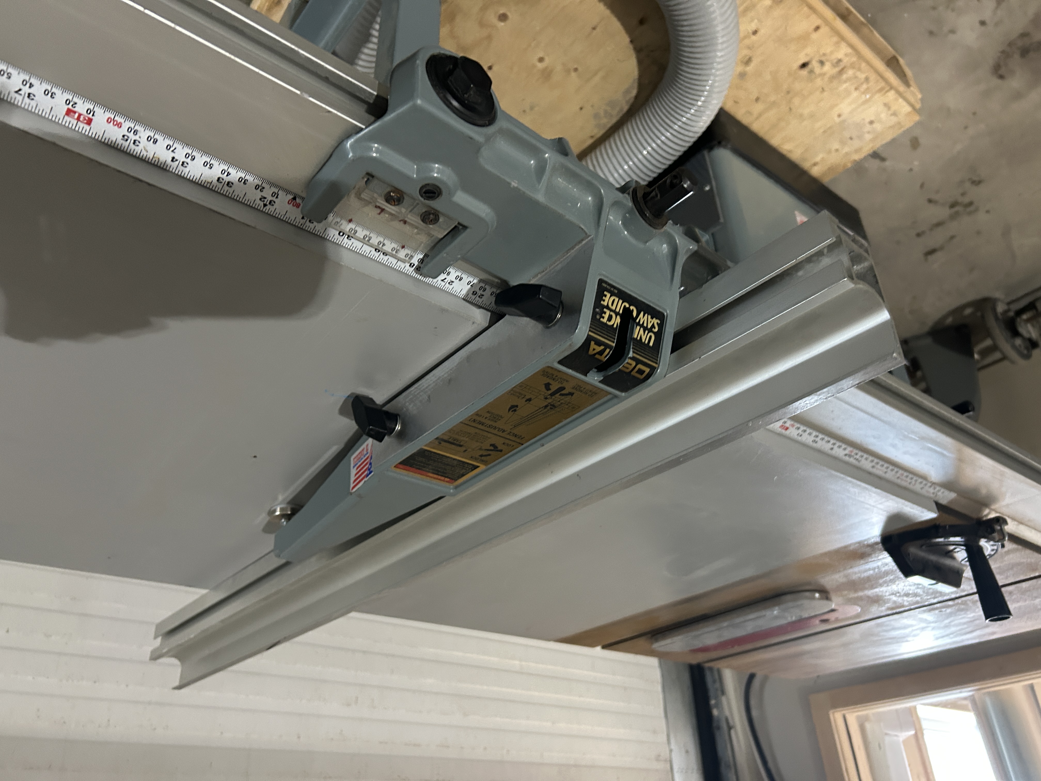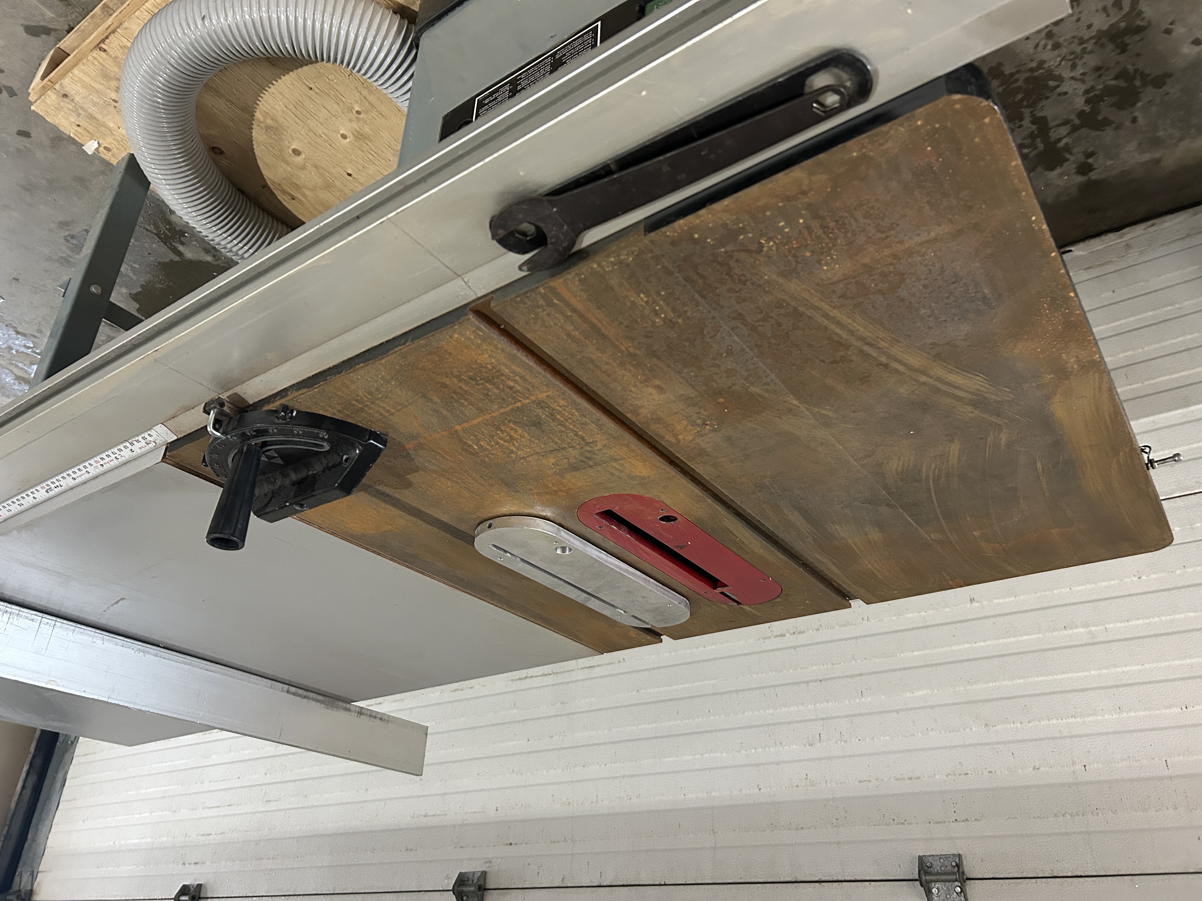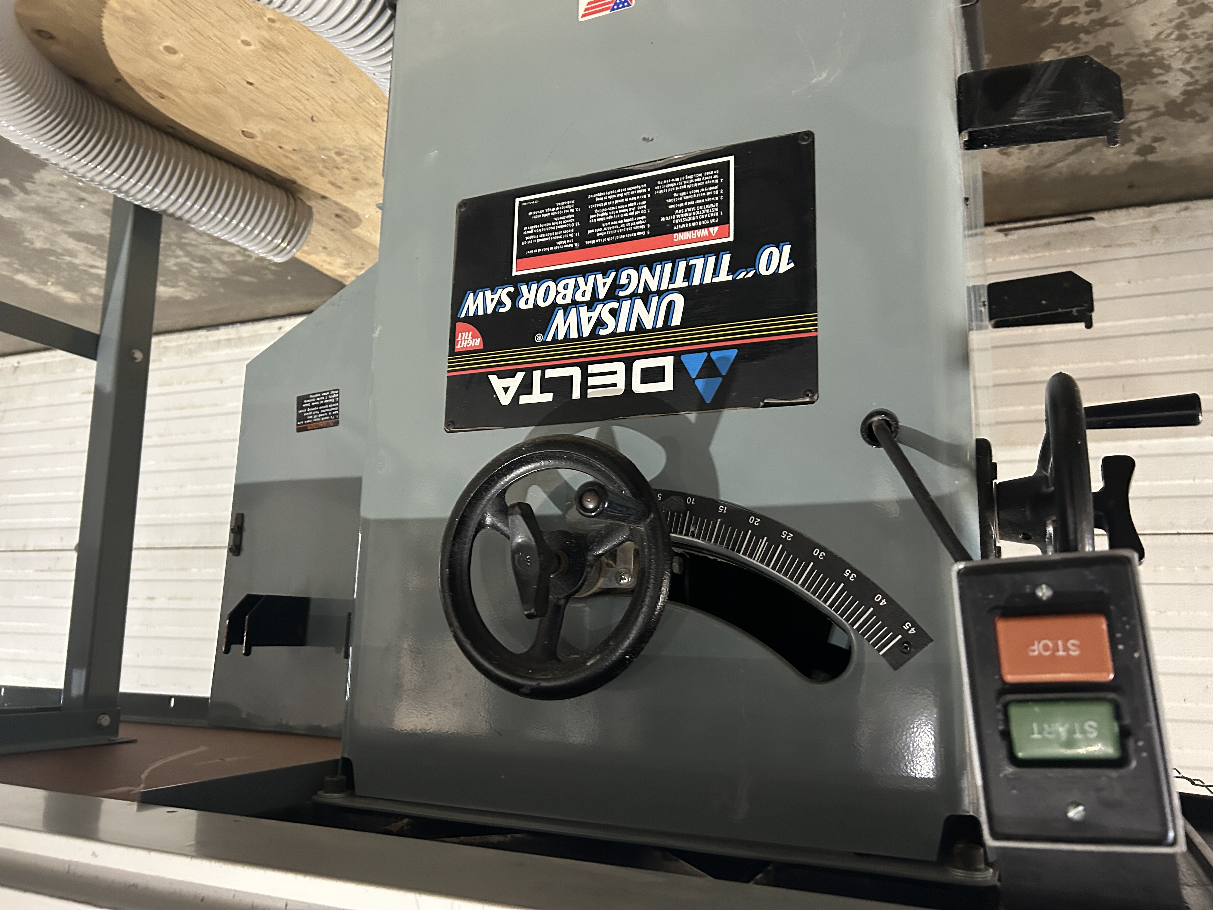 Banc de scie 10 pouces Delta, 240V 1 phase. Il manque le garde de sécurité pour la scie. Présentement non-conforme pour utilisation en entreprise. Vendu tel quel.