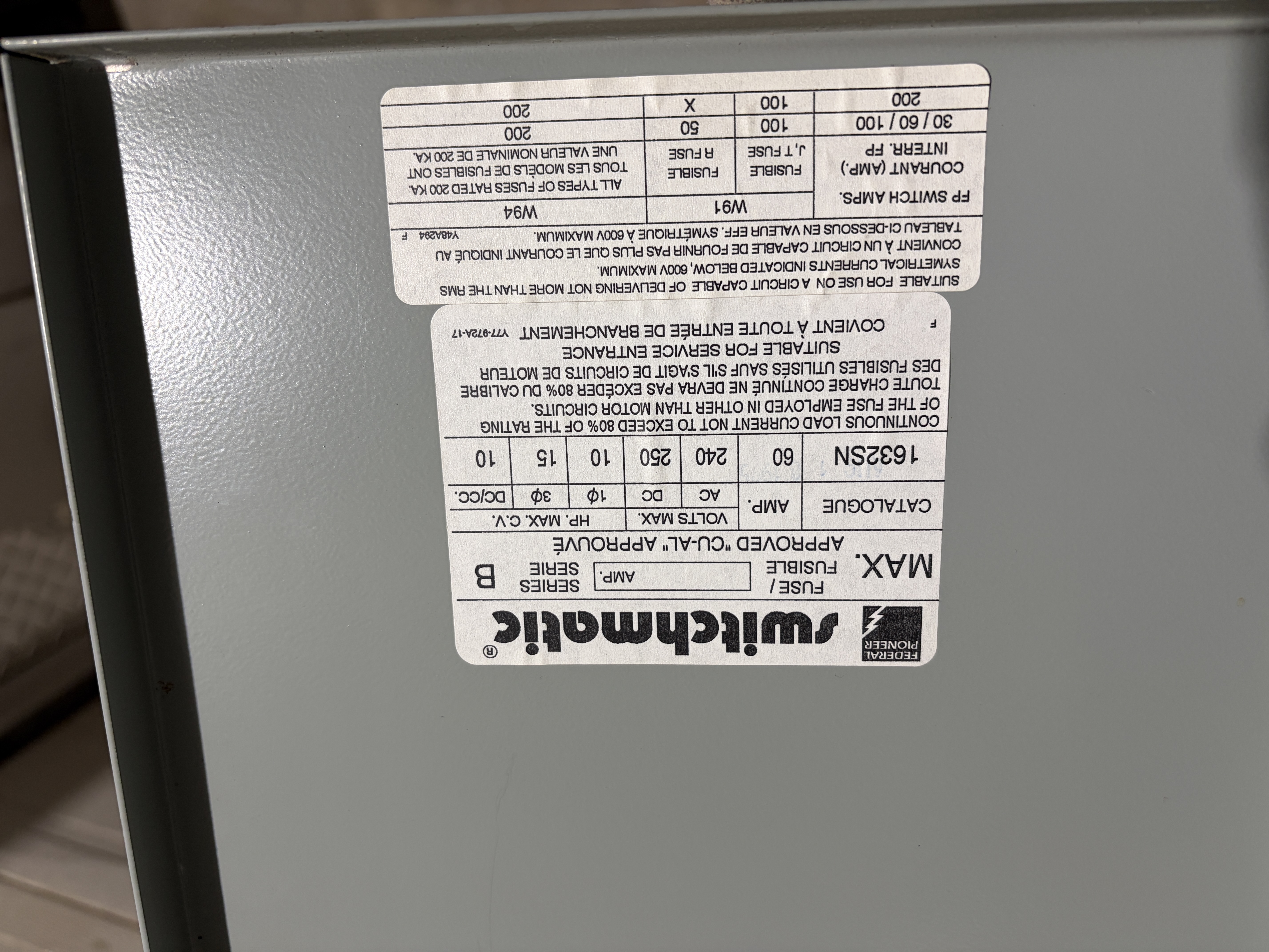 Interrupteur de sécurité 60 ampère, 240 volt ac. Cat. 1632SN