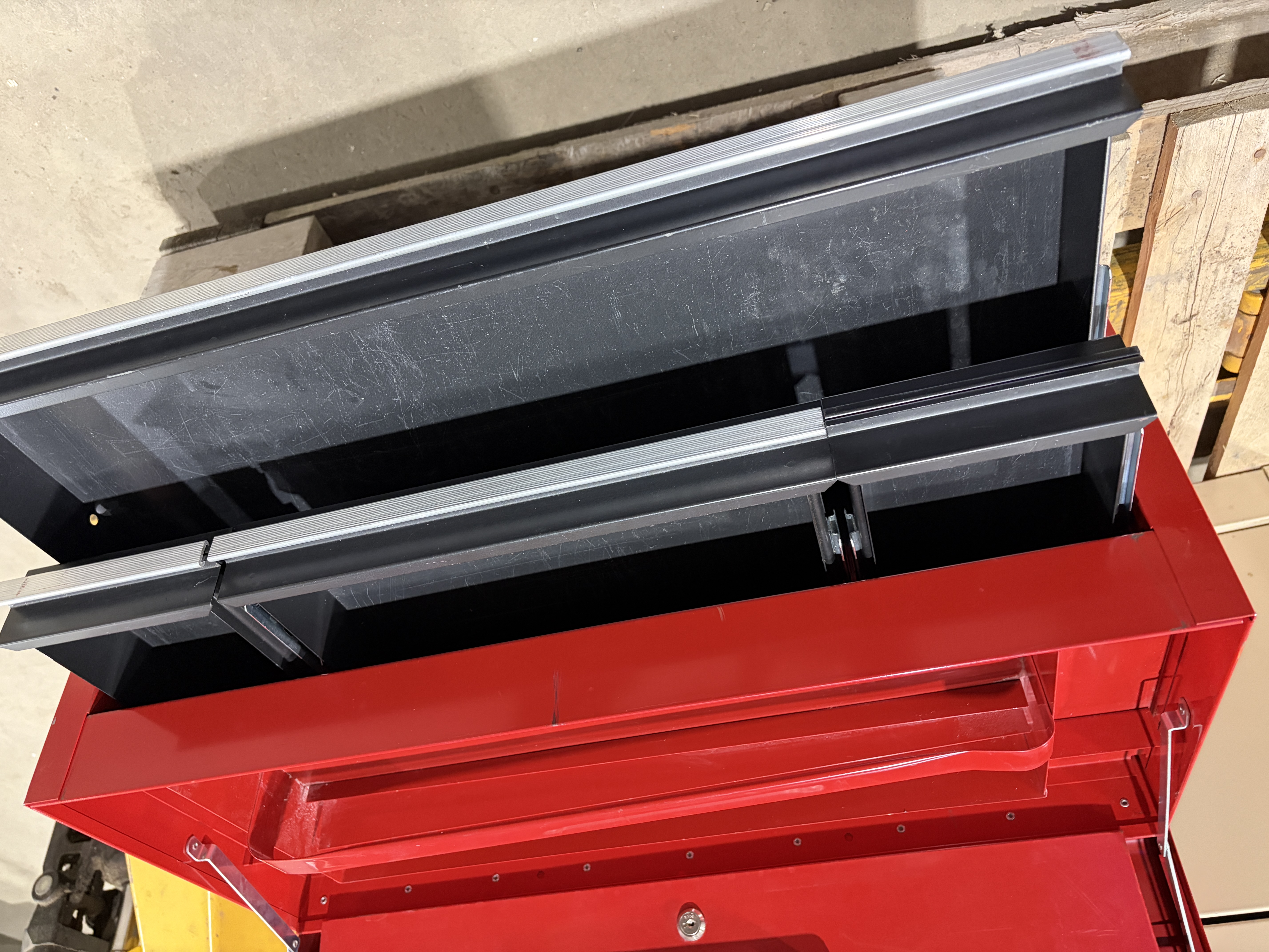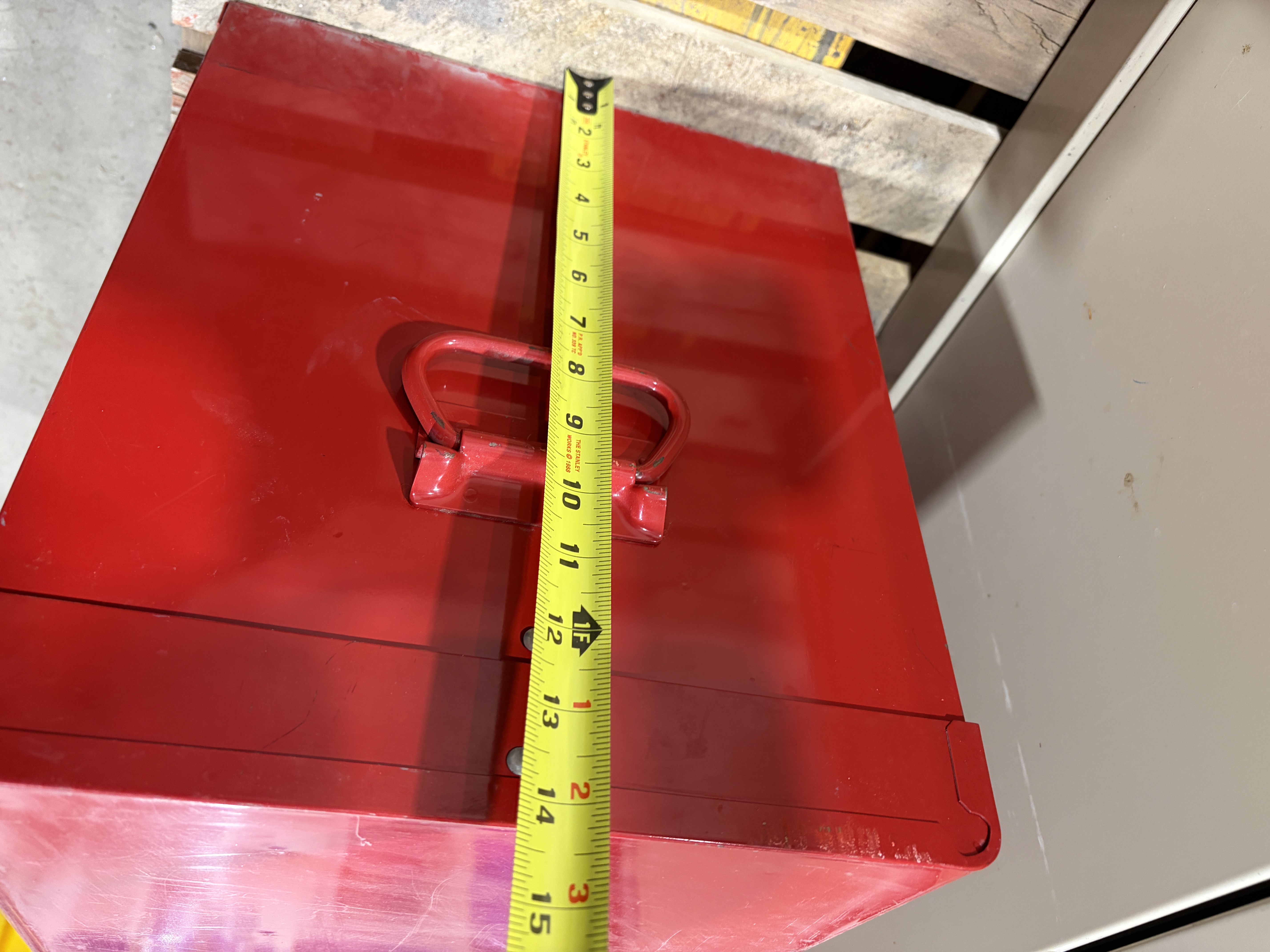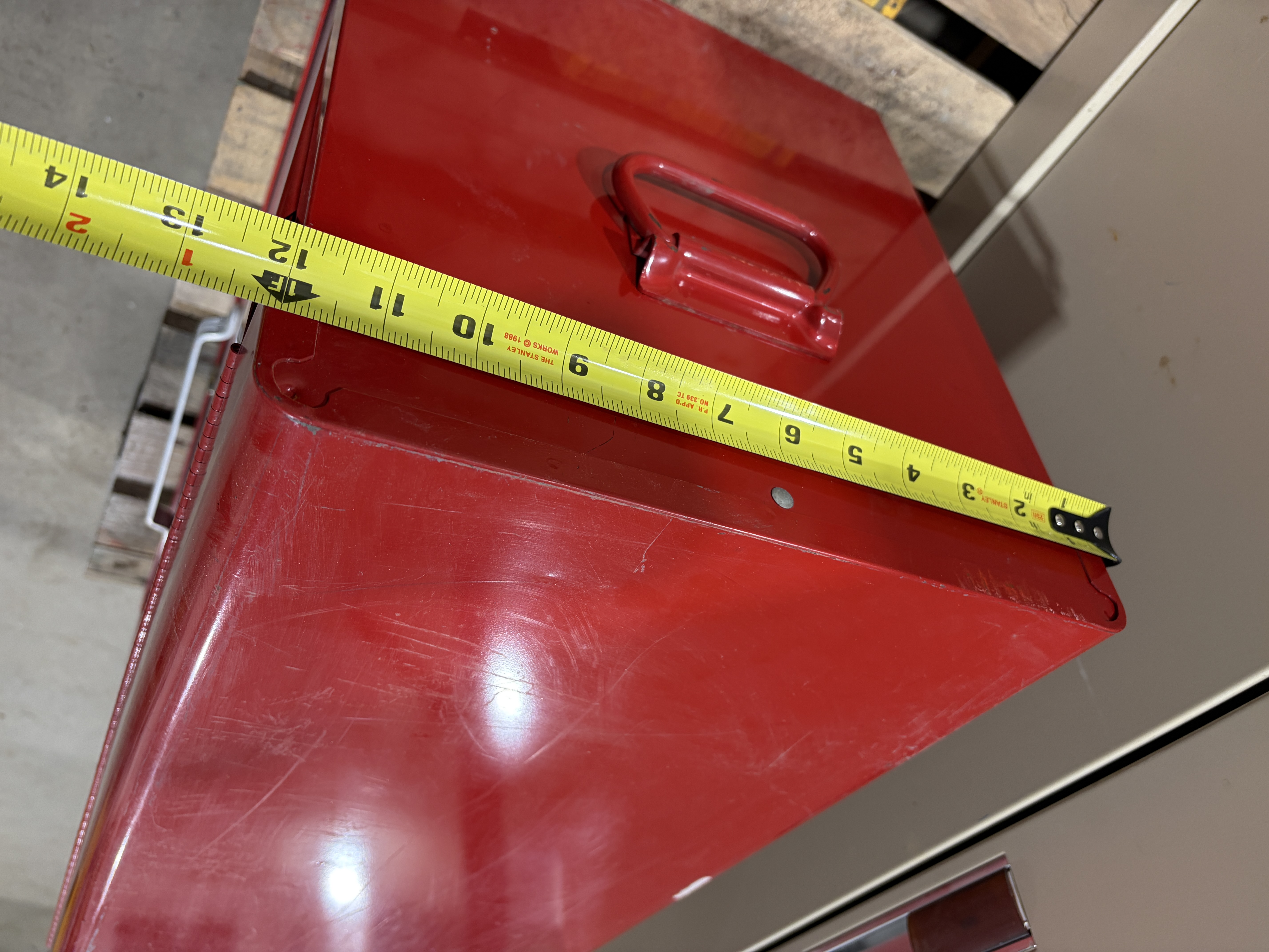 Dessus de coffre à outil Dimension: 26 po 1/2 x 12 po x 14 po de hauteur