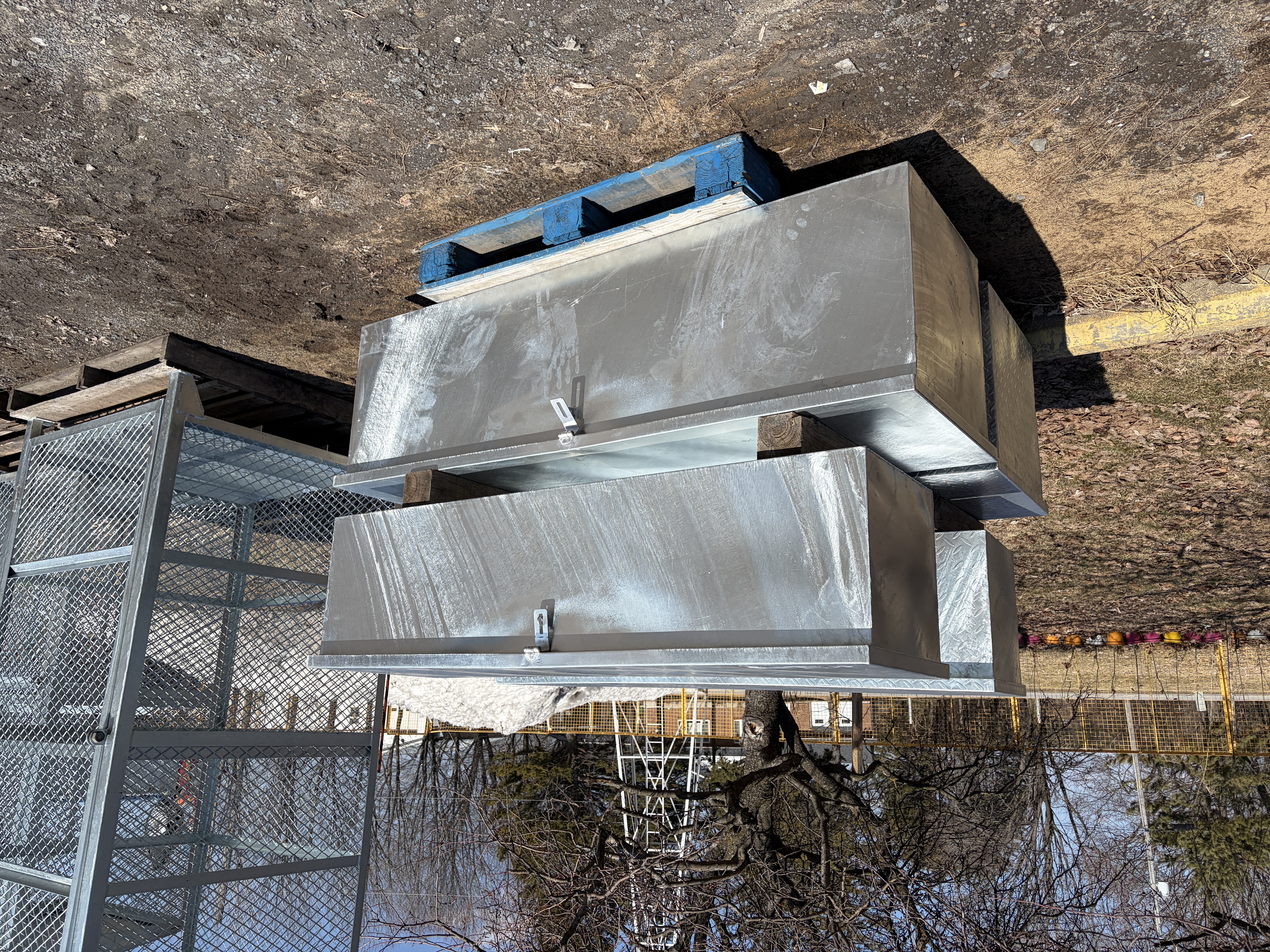 Coffre de rangement en acier galvanisé (neuf), Plaque lisse ou antidérapante (checker plate) Dimension: 6o po x 16 po x 16 po de haut Dimension: 66 po x 20 po x 20 po de haut