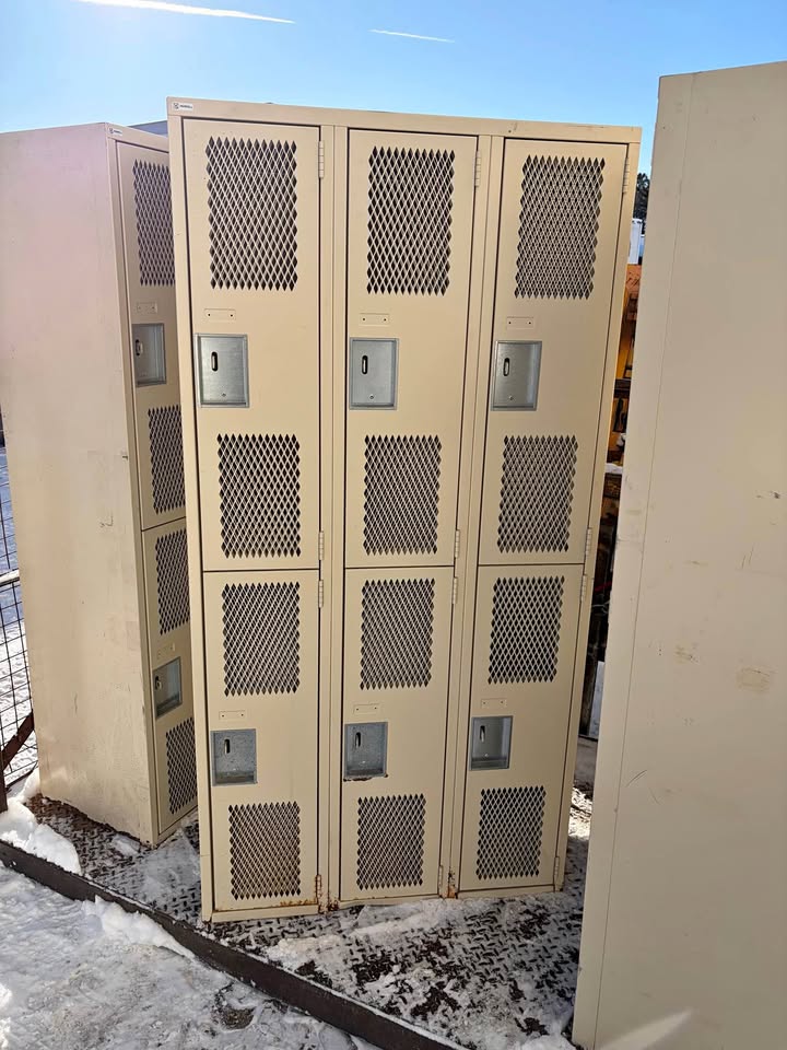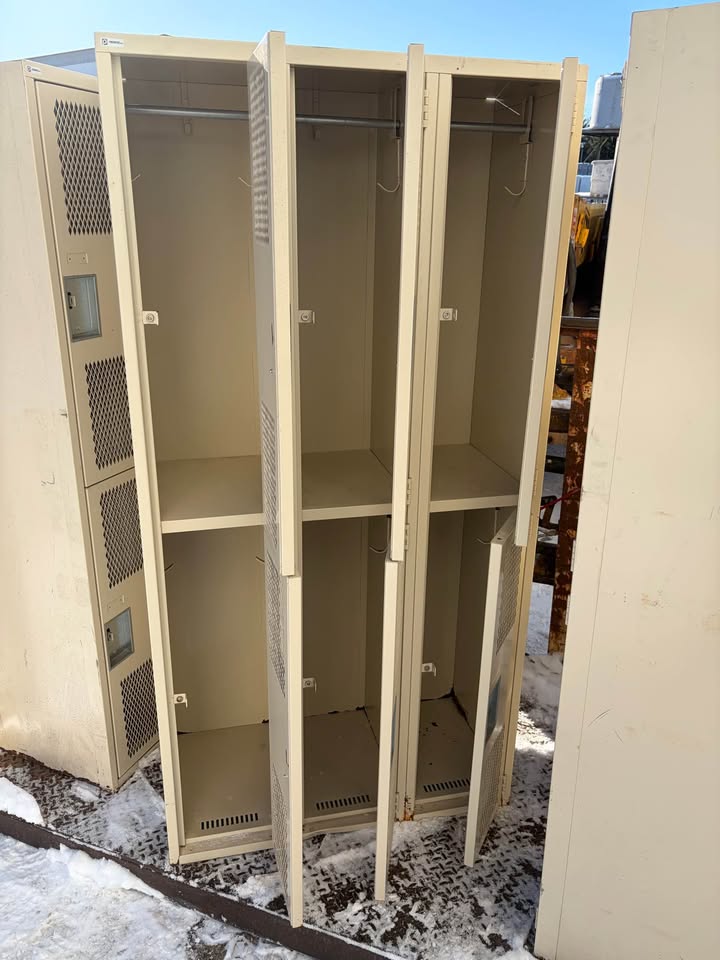 Casiers vestiaires en blocs de 6 demi-portes avec grillage ventilé.