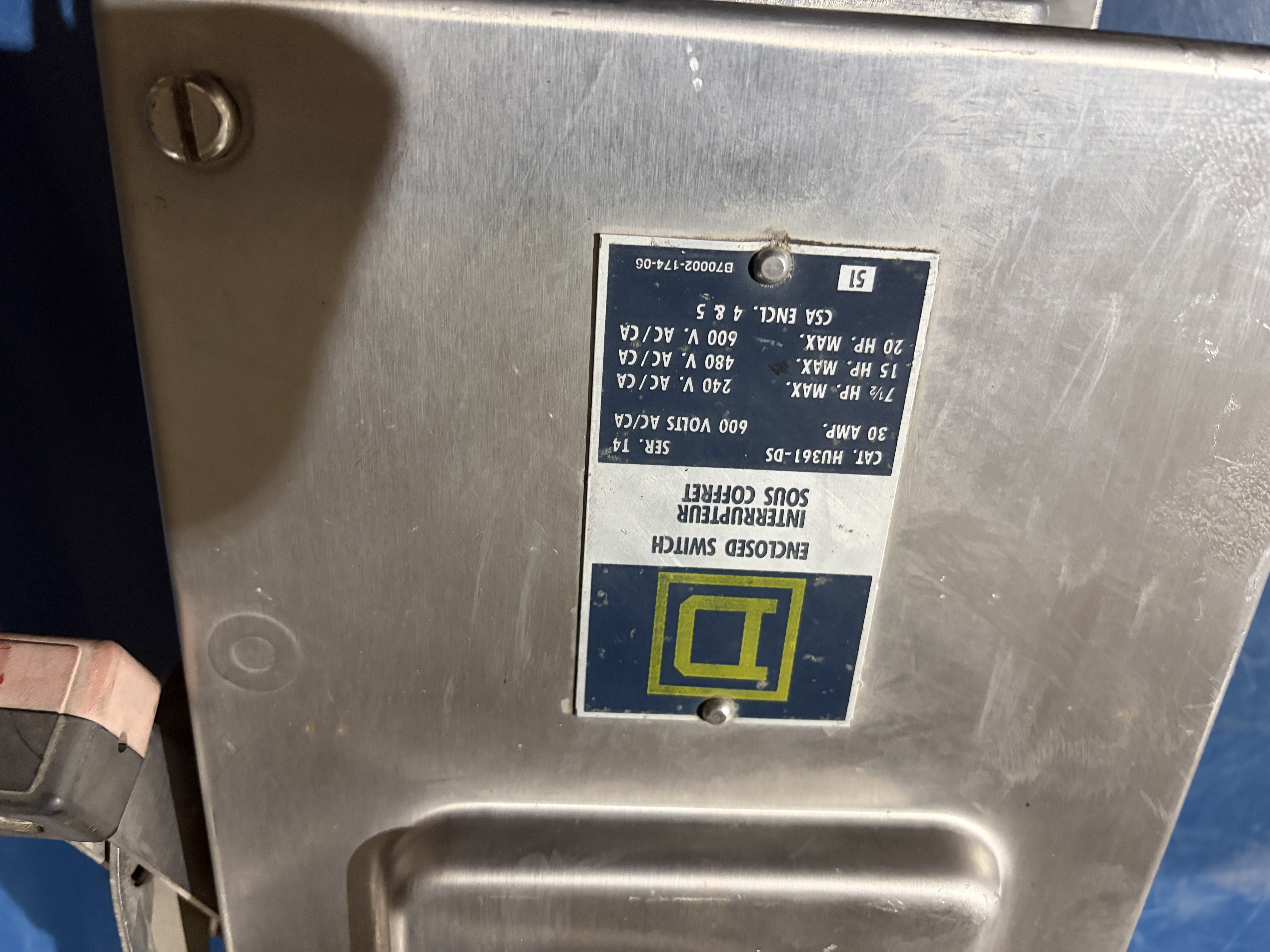 Interrupteur de sécurité en inox, 30 ampères 600 volts Marque: Square D, 30 ampères 600 volts