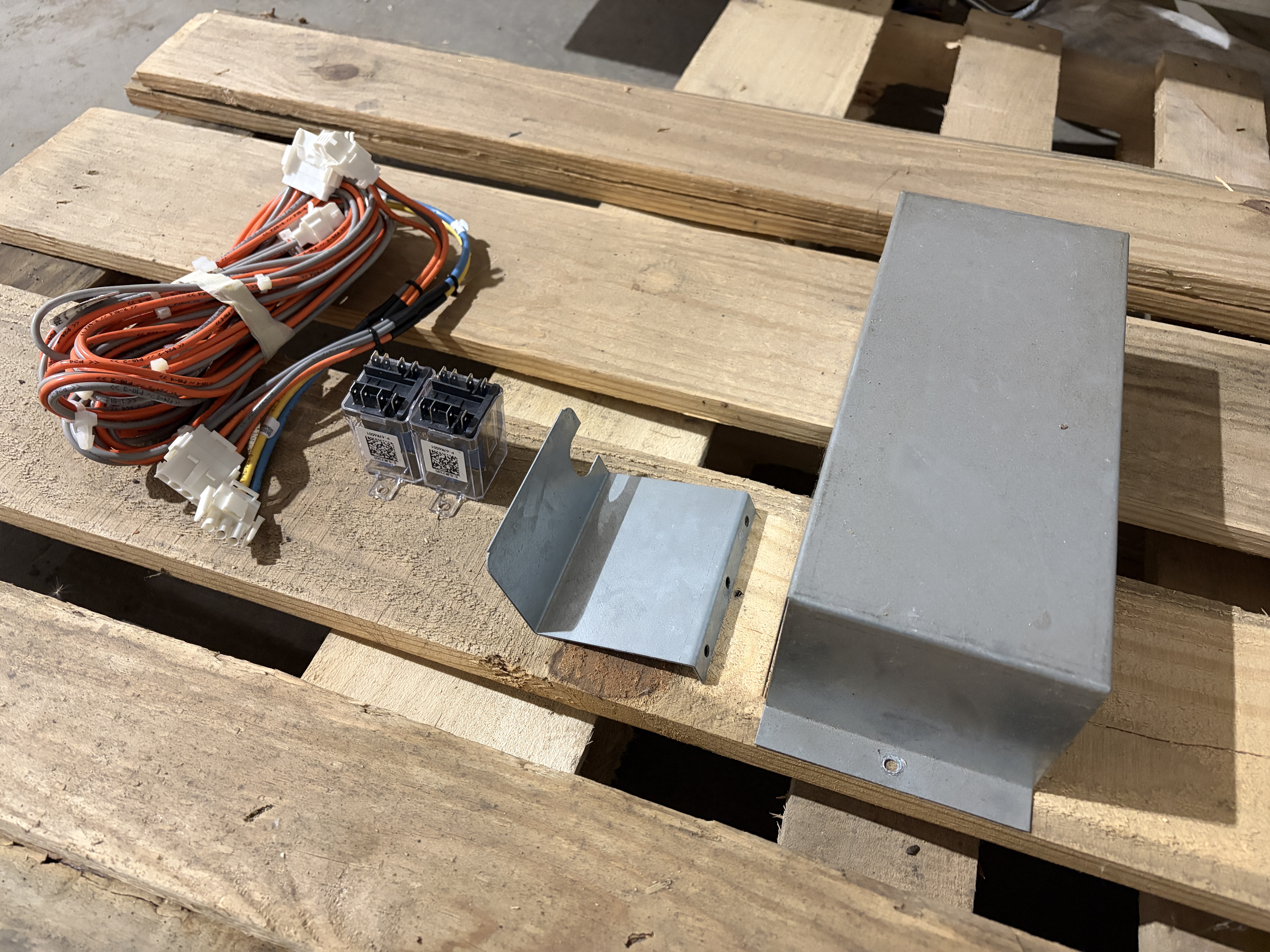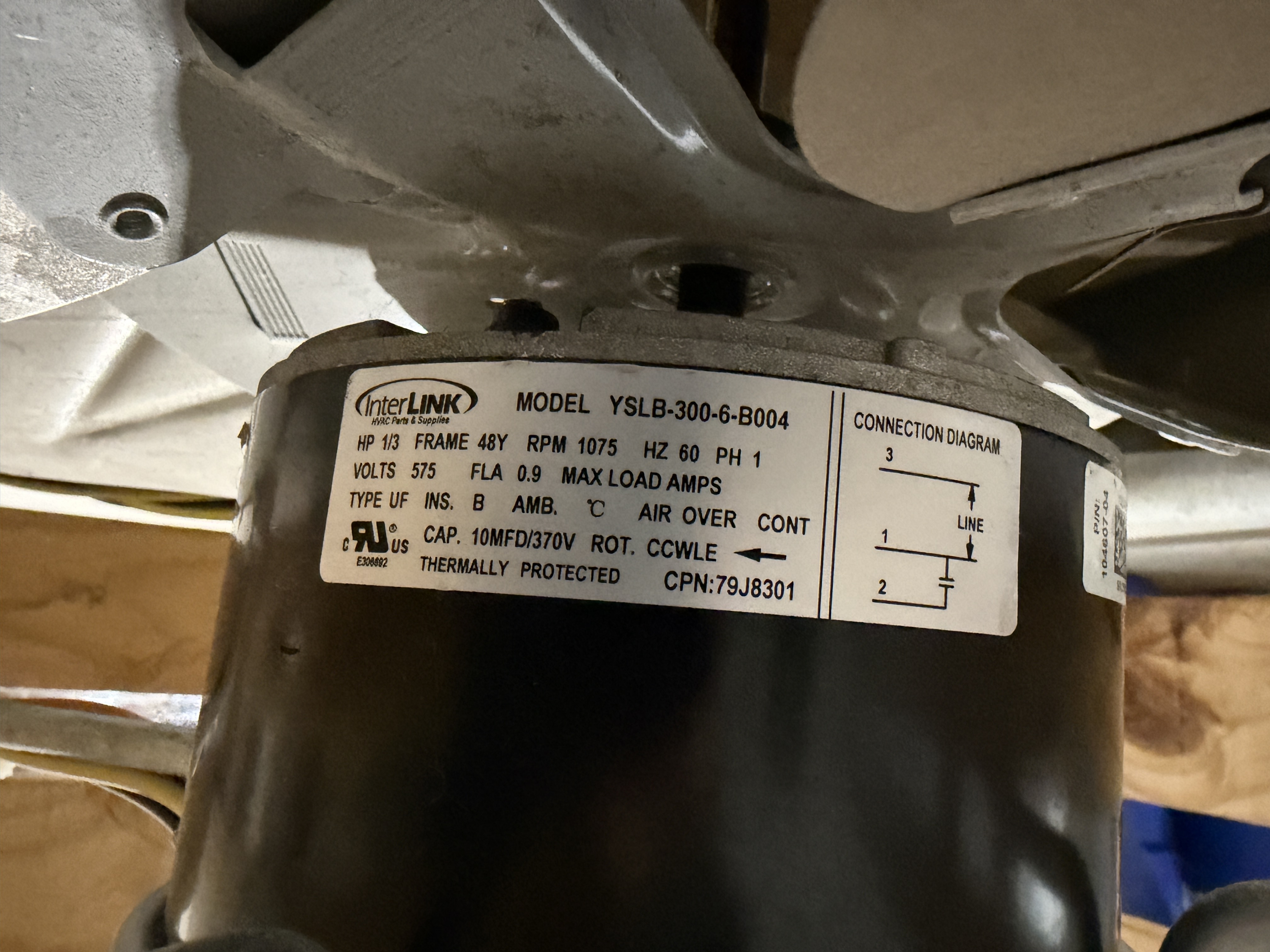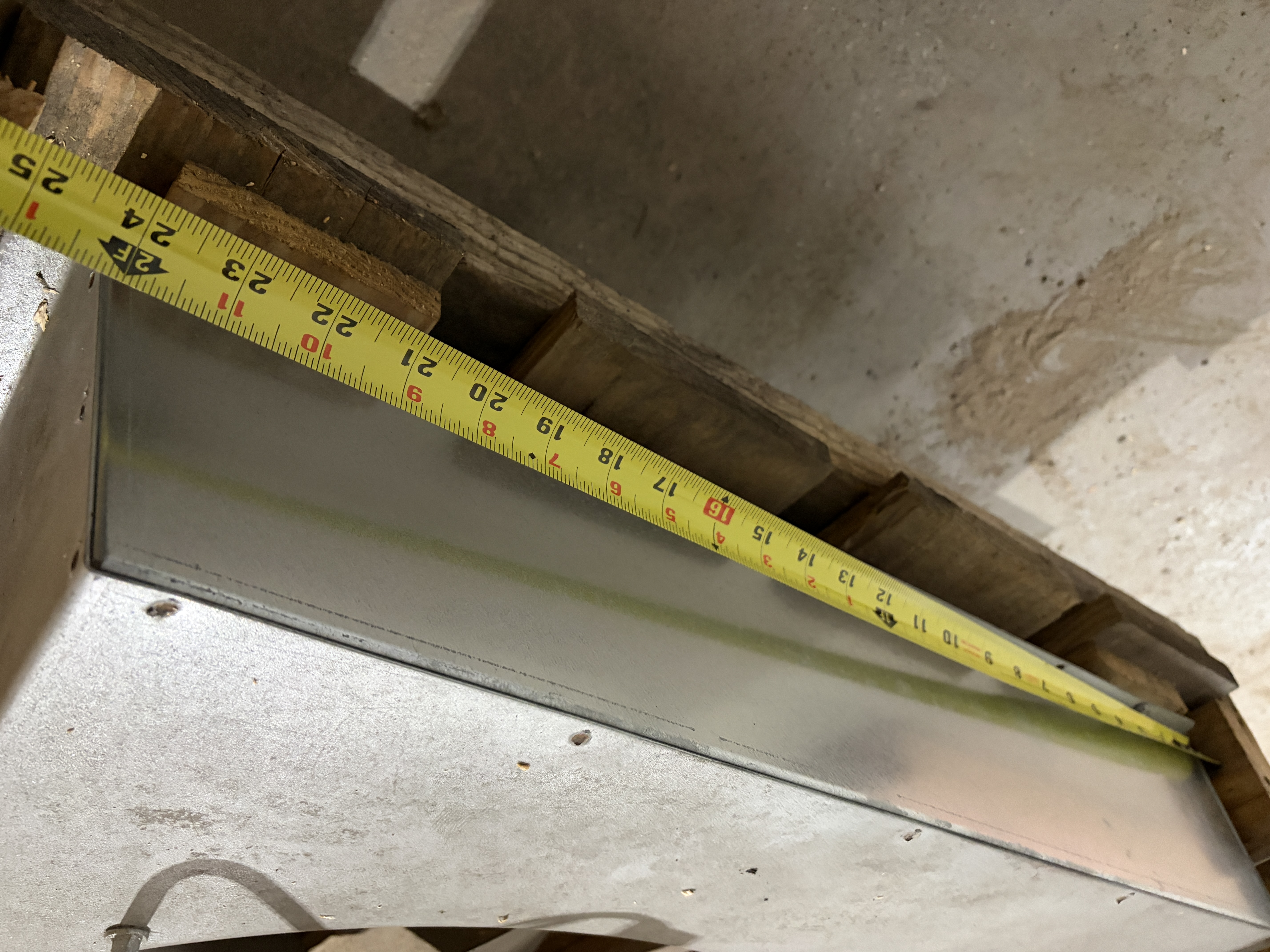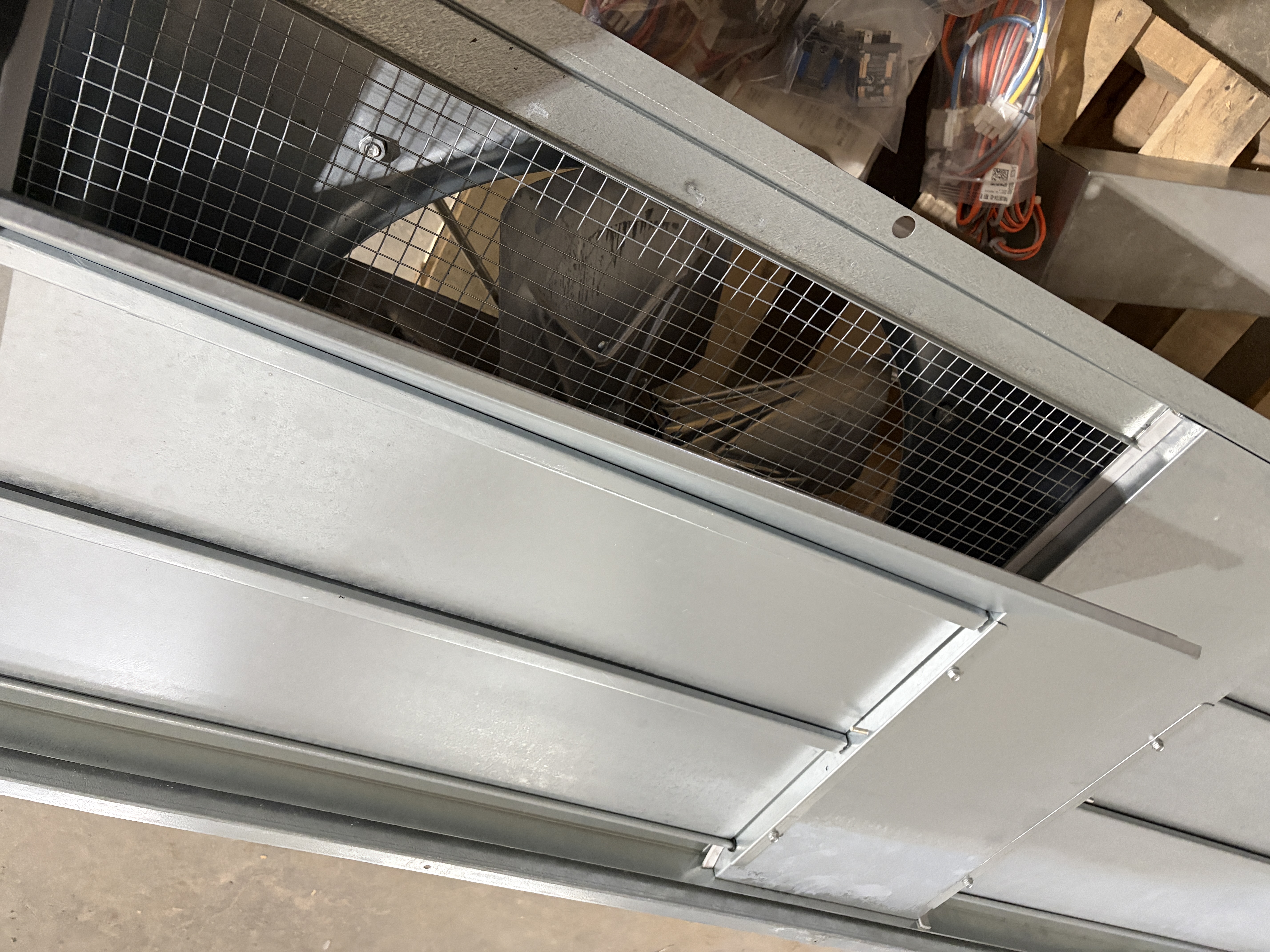 Ventilateur industriel double avec volet. Diamètre: 20 po. Dimension: 68 po 1/2 x 24 po x 5 po 1/2 Voltage: 575 volt. Marque: Lenox.