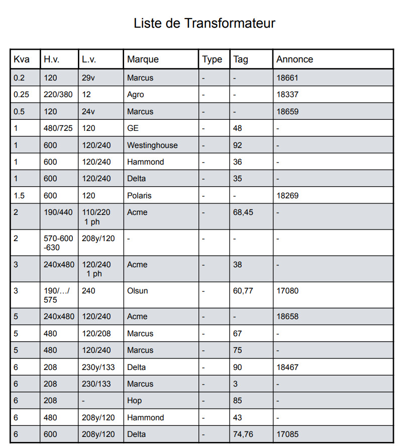 Prix qté 1200 $CAD /