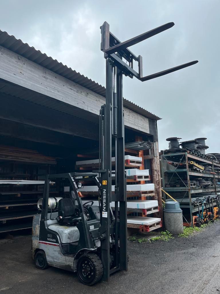 Modèle: MCULO2A30LV. 8743 heures. Capacité: 6000 livres. Poids: 10020 livres. Longueur: 97” + 52”(fourches). Largeur: 44”. X Hauteur: 83”. Largeur du tablier: 60”. Hauteur maximale de levage: 171”. Dimensions des fourches: 52” de longueur et 5” de largeur. Side shift. Fonctionne très bien.