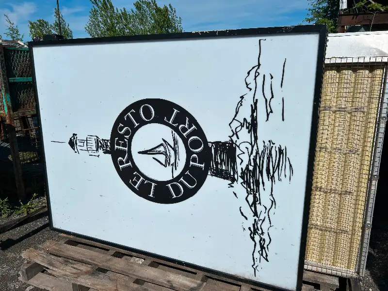 Enseigne / Pancarte / Affiche (Le resto du port) Recto-verso Dimension: 54 po x 72 po de hauteur