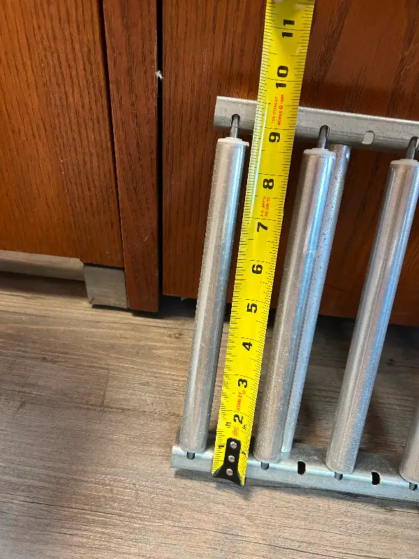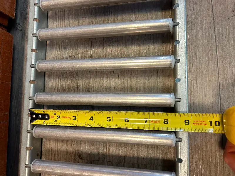 Convoyeur à rouleaux en aluminium Dimension extérieur: 9 po 1/2 x 72 po ( 6pi ). Largeur des rouleaux: 8 po 1/4.