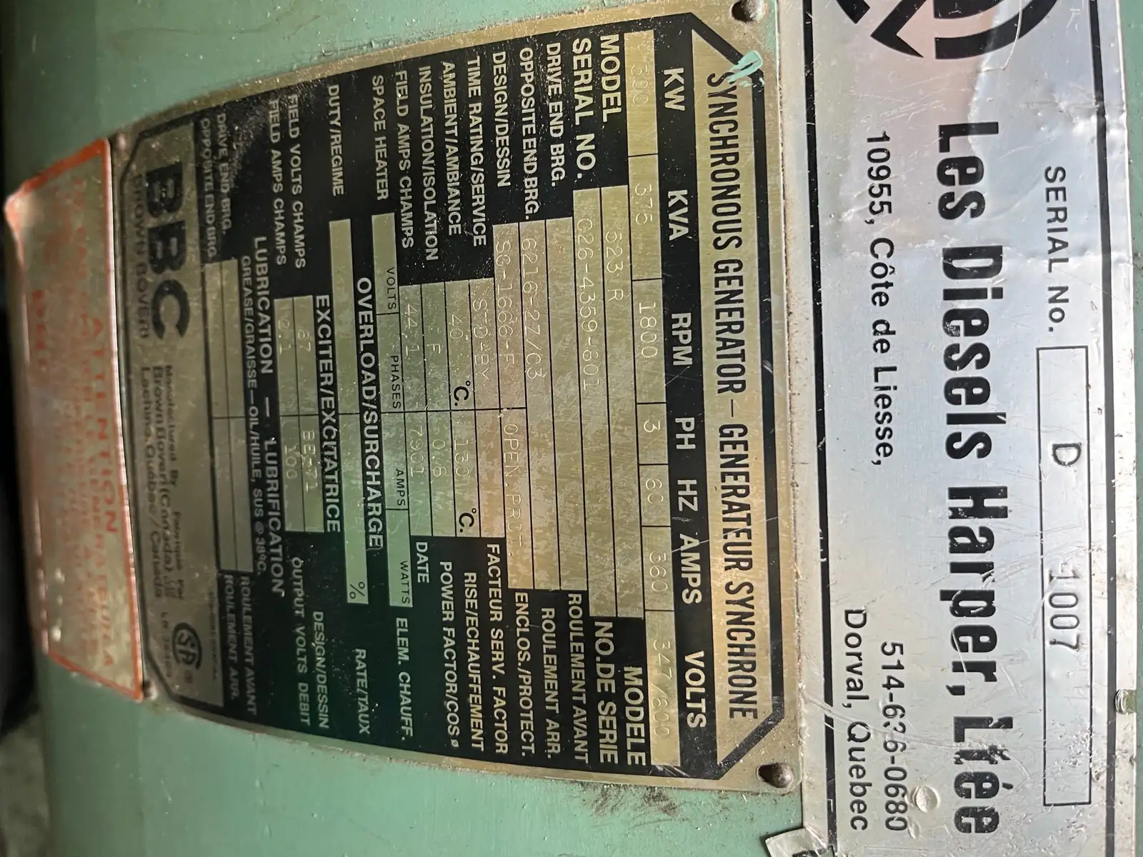 Génératrice Détroit Diesel 360 ampères. 375 KVA. 300 KW. 347/600 volts, 3 phases. 816 heures. 112" de longueur x 56" de profondeur x 68" de hauteur.