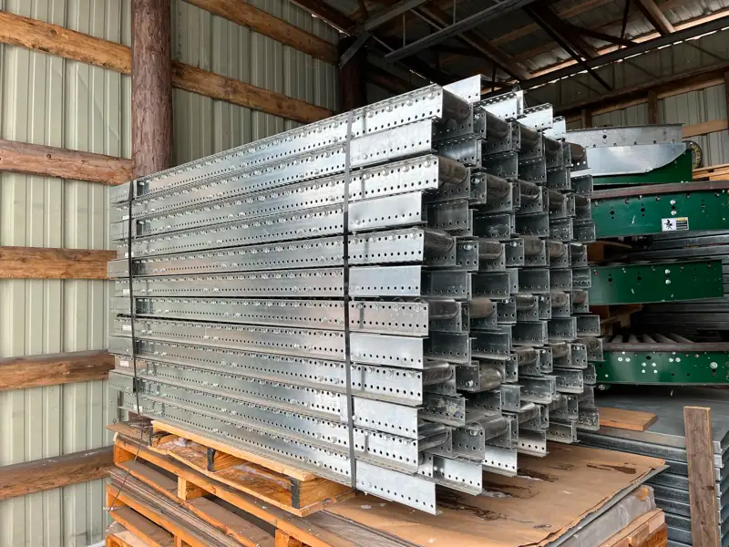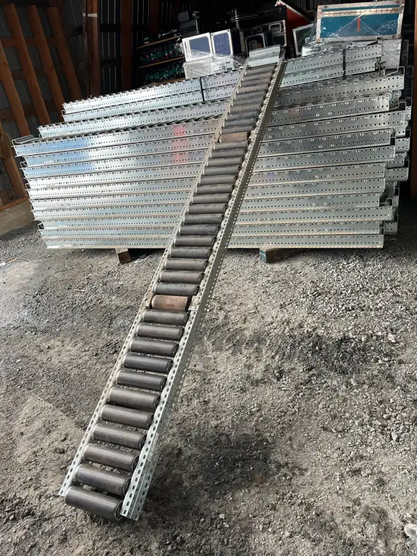 Convoyeur à rouleaux en acier. 11 1/2" de largeur. 4 1/8" de hauteur. 74" de longueur Dimensions des rouleaux: 8 1/2" de largeur et 2 1/2" de diamètre. 74" de longueur: 100$/ch. ******Rupture de stock120" de longueur: 150$/ch***B/O