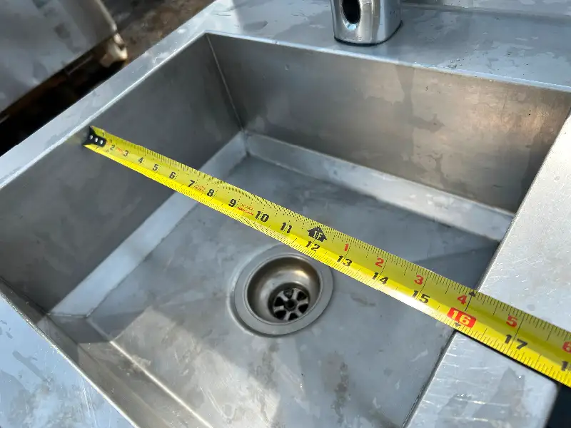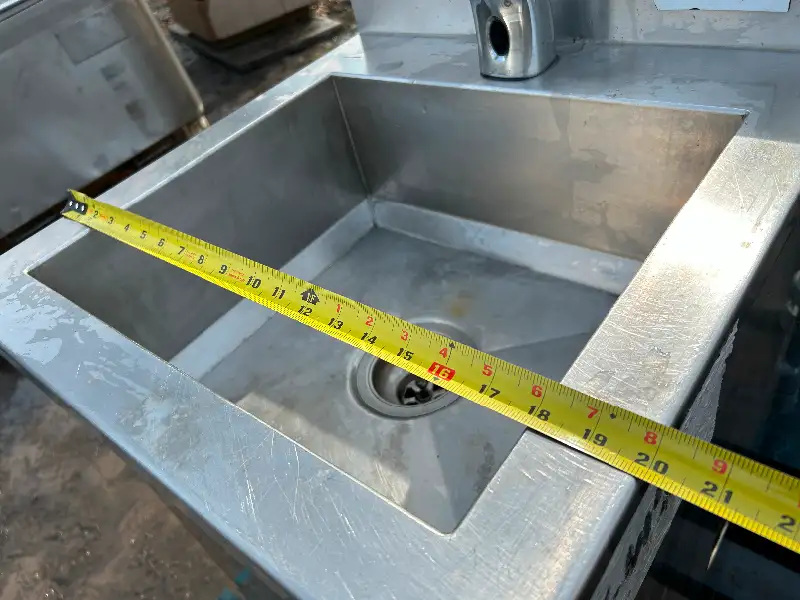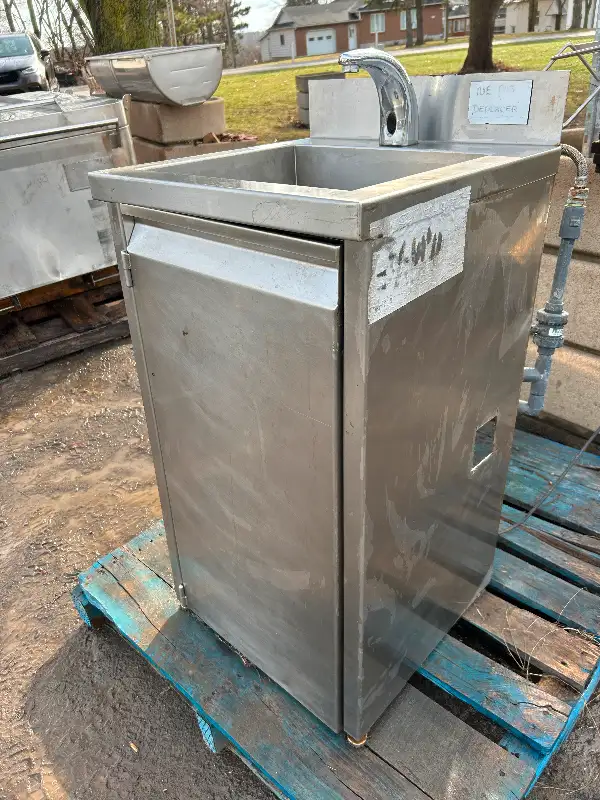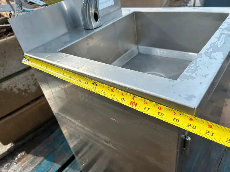 Lavabo en inox Dimension extérieur: 20 po x20 po x 36 po de hauteur Dimension de lavabo: 16 po x 14 po x 7 po de hauteur