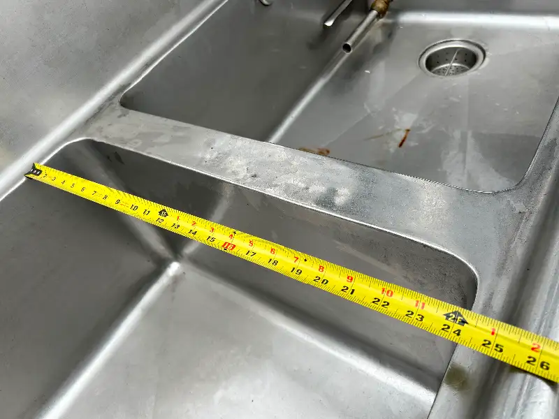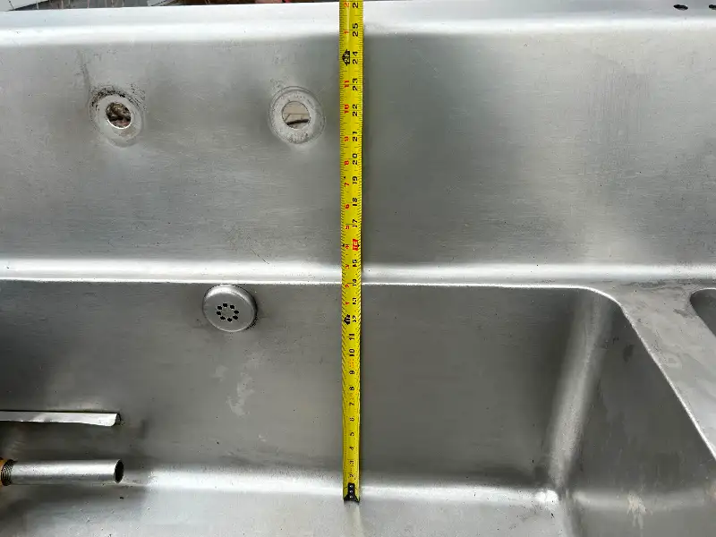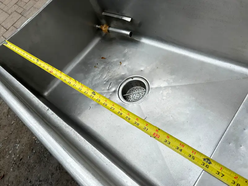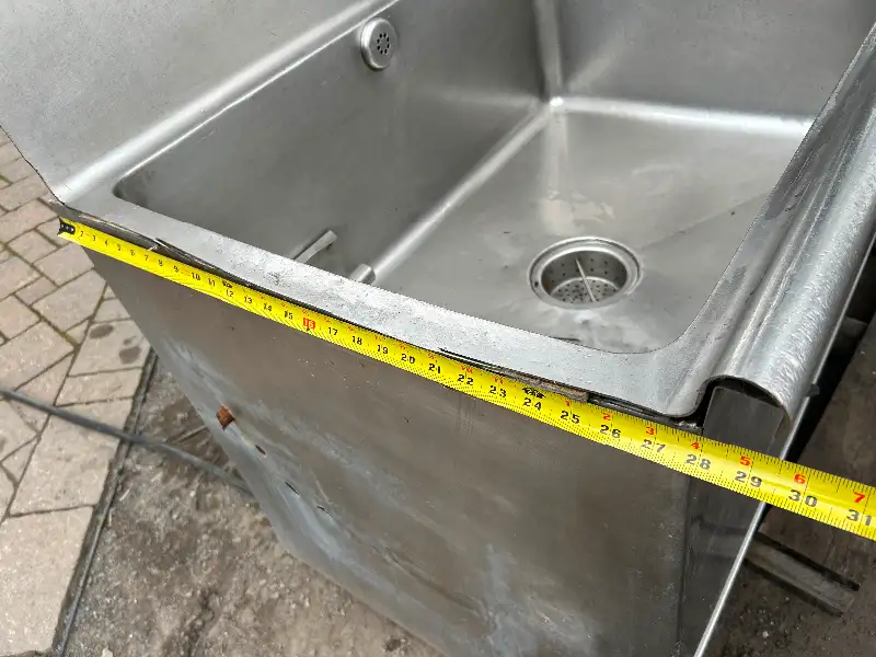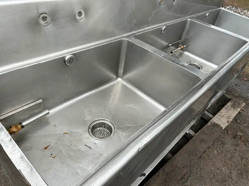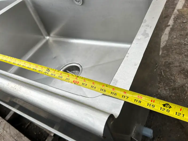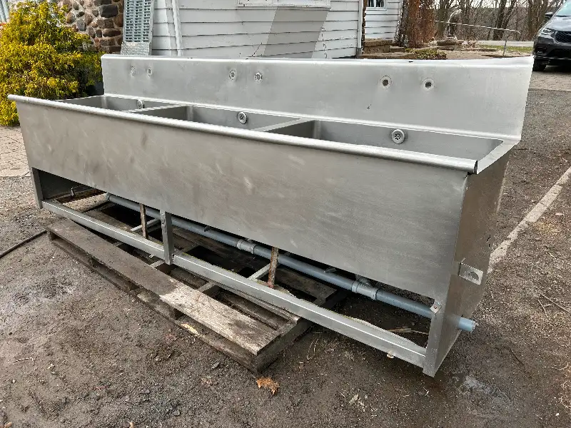 Lavabo 3 cuves en inox Dimension de la cuve: 36 po x 24 po x 14 po de profondeur Dimension extérieur: 117 po x 29 po 1/2 x 32 po de hauteur