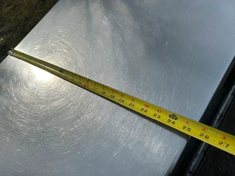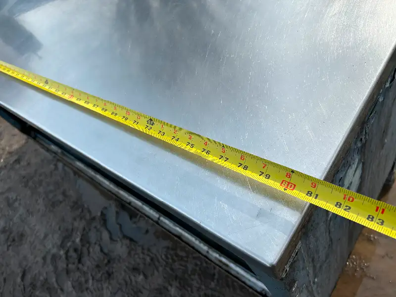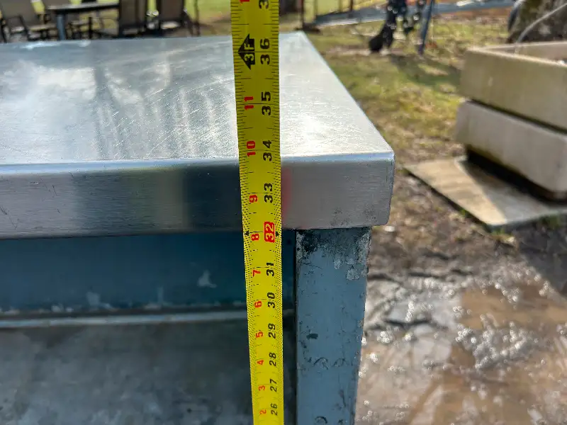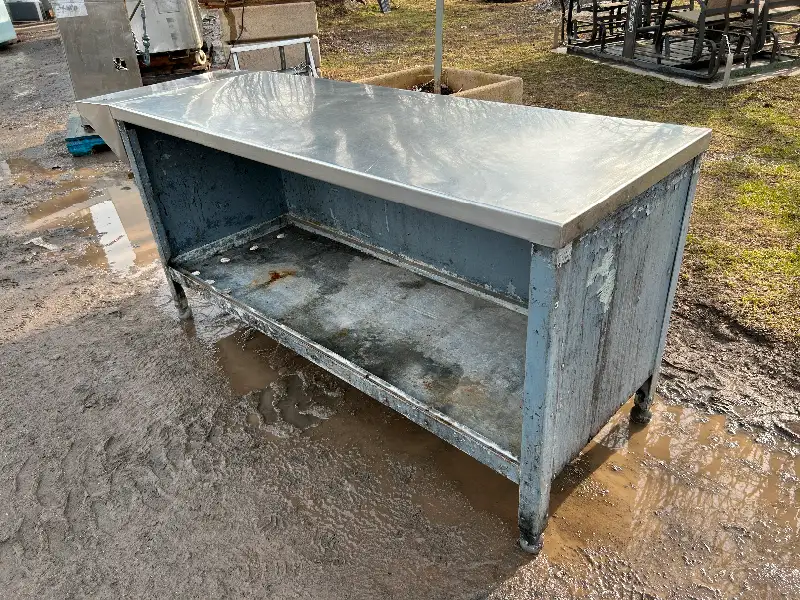 Comptoir avec dessus en inox Dimension: 81 po x 25 po 1/4 x 34 po de hauteur