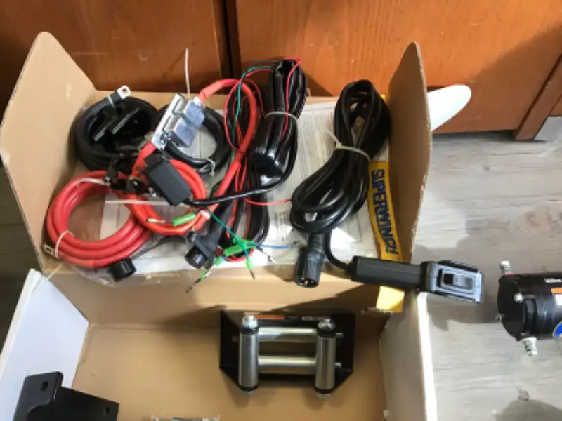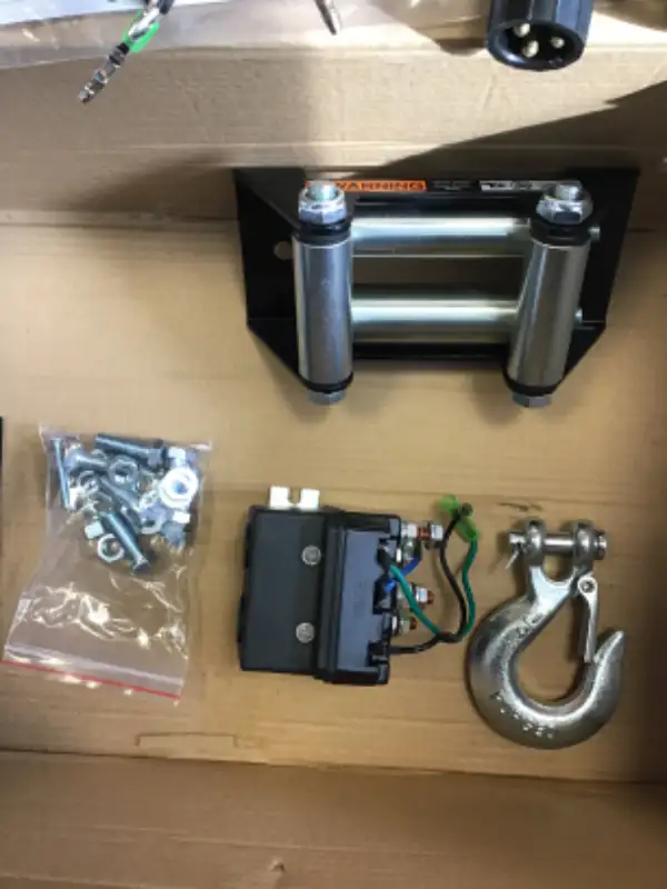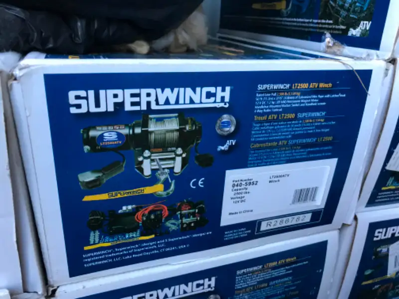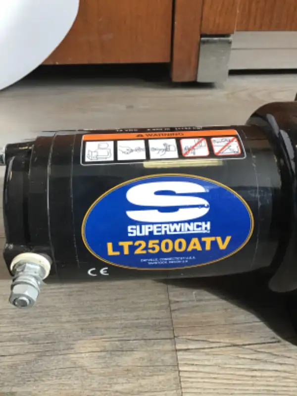 Treuil (winch) 2500 livres. 12 volts DC. Moteur 1.2 HP. Câble métallique galvanisé de 50 pieds.