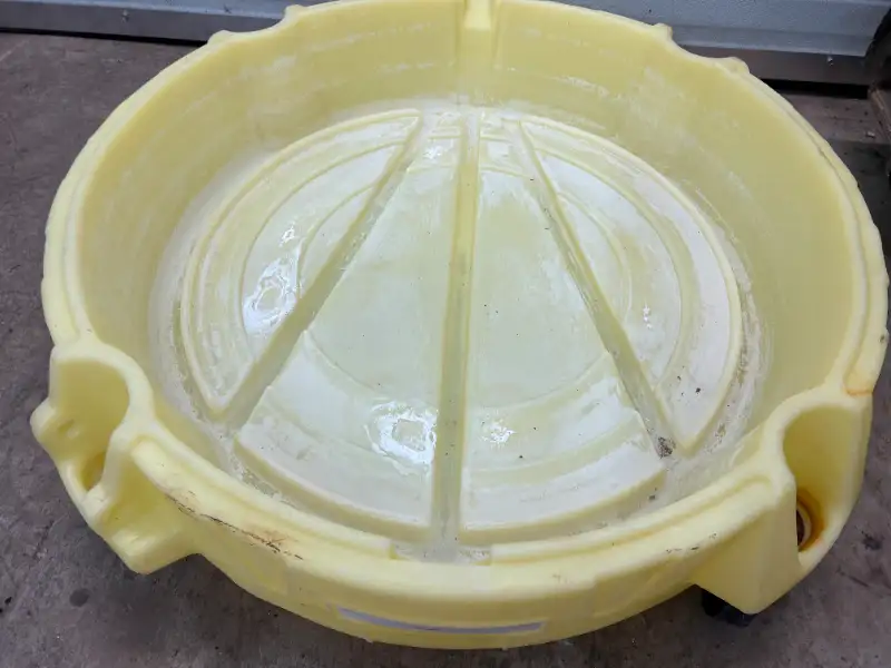 Bacs de rétention jaune à roulettes pour baril 95$/chaque 28 po x 6 po 1/4 de profondeur