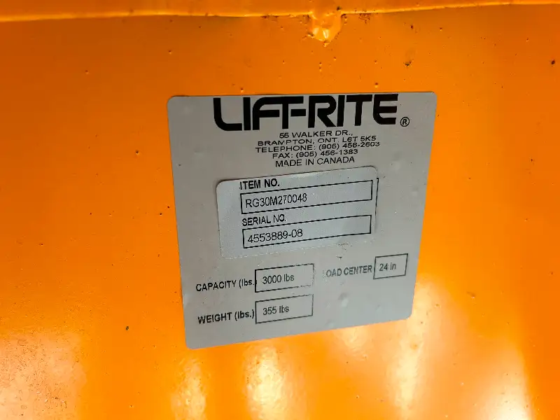 Transpalette élévateur à ciseaux Marque: Lift-Rite Capacité: 3000 lbs Hauteur de levage: 31 po