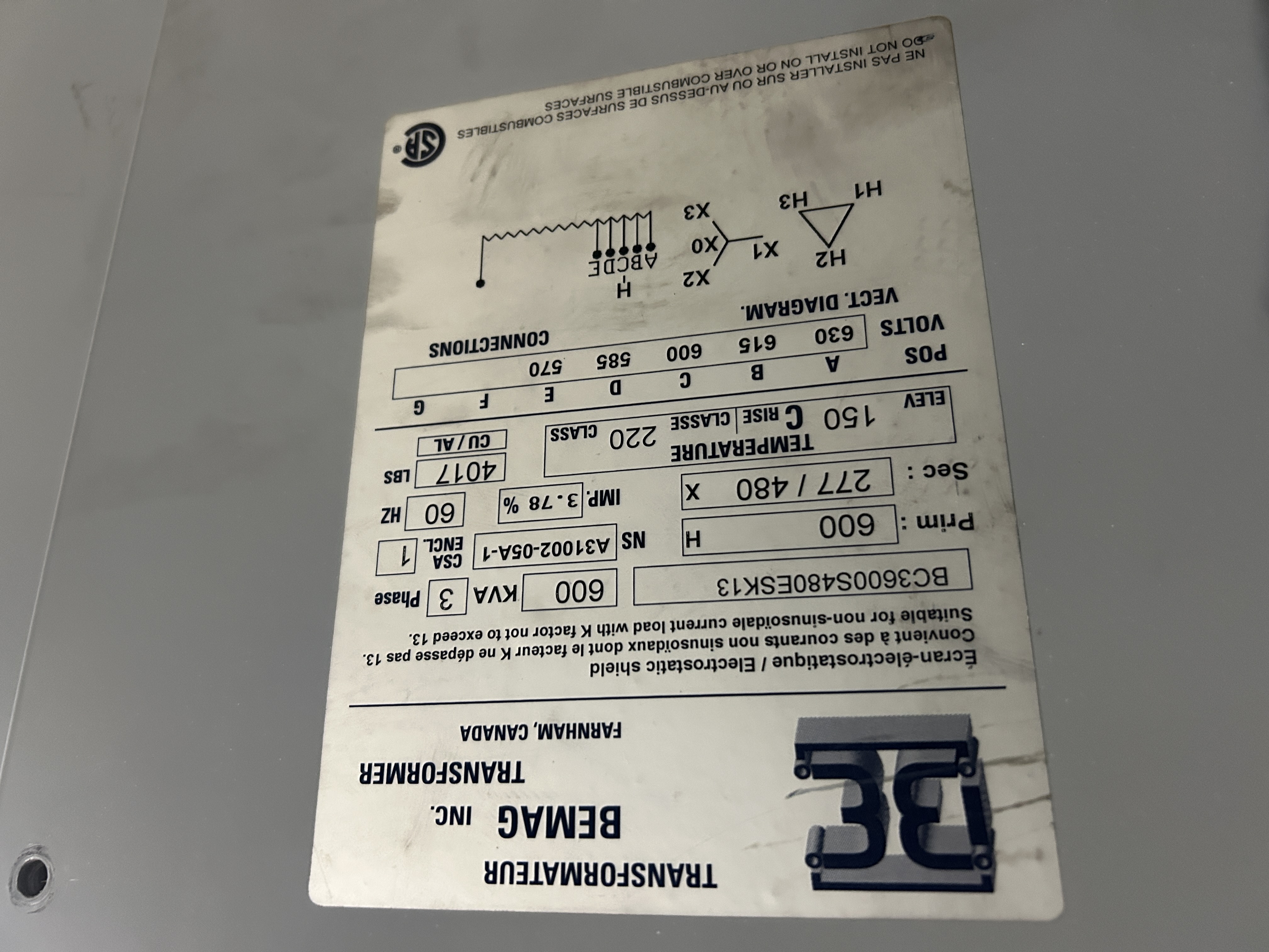 Transformateur 600 kva 600, 277/480, 3 phases