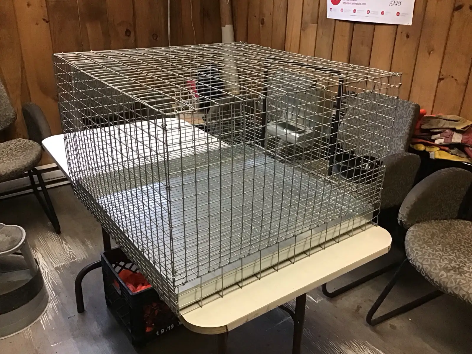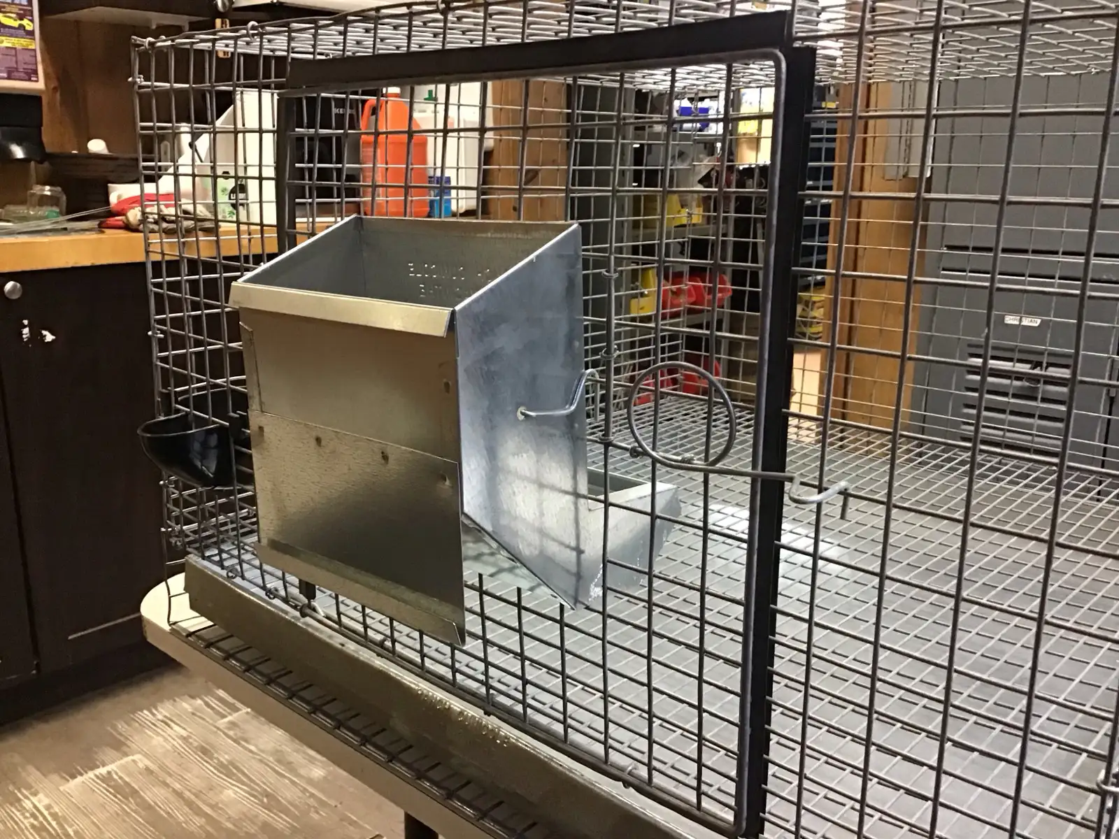 Cage à lapin en acier galvanisé. Dimensions: 24"x 24"x 16" de hauteur. Mangeoire et abreuvoir incluses. Tiroir en acier galvanisé. Plusieurs en inventaire.