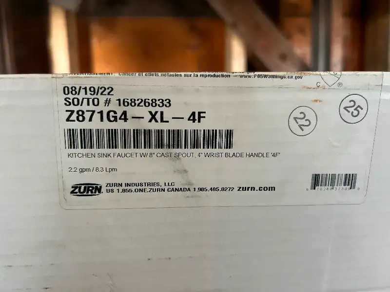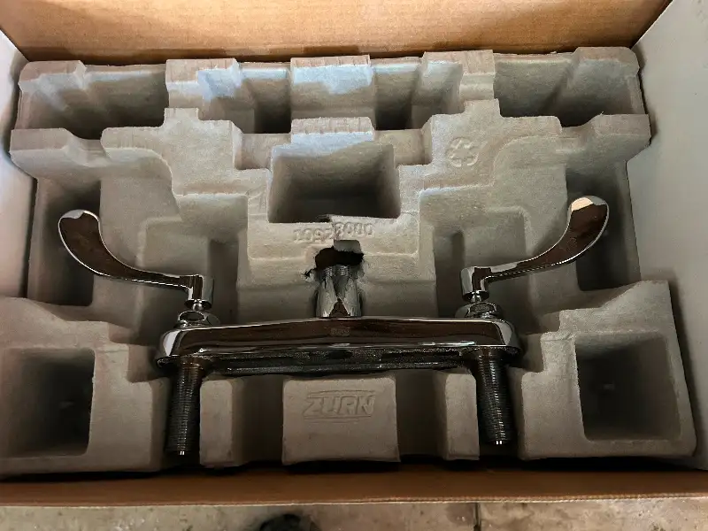 Robinet central de 8 pouces avec bec en fonte de 8" et poignées de lame de poignet de 4" Marque: Zurn