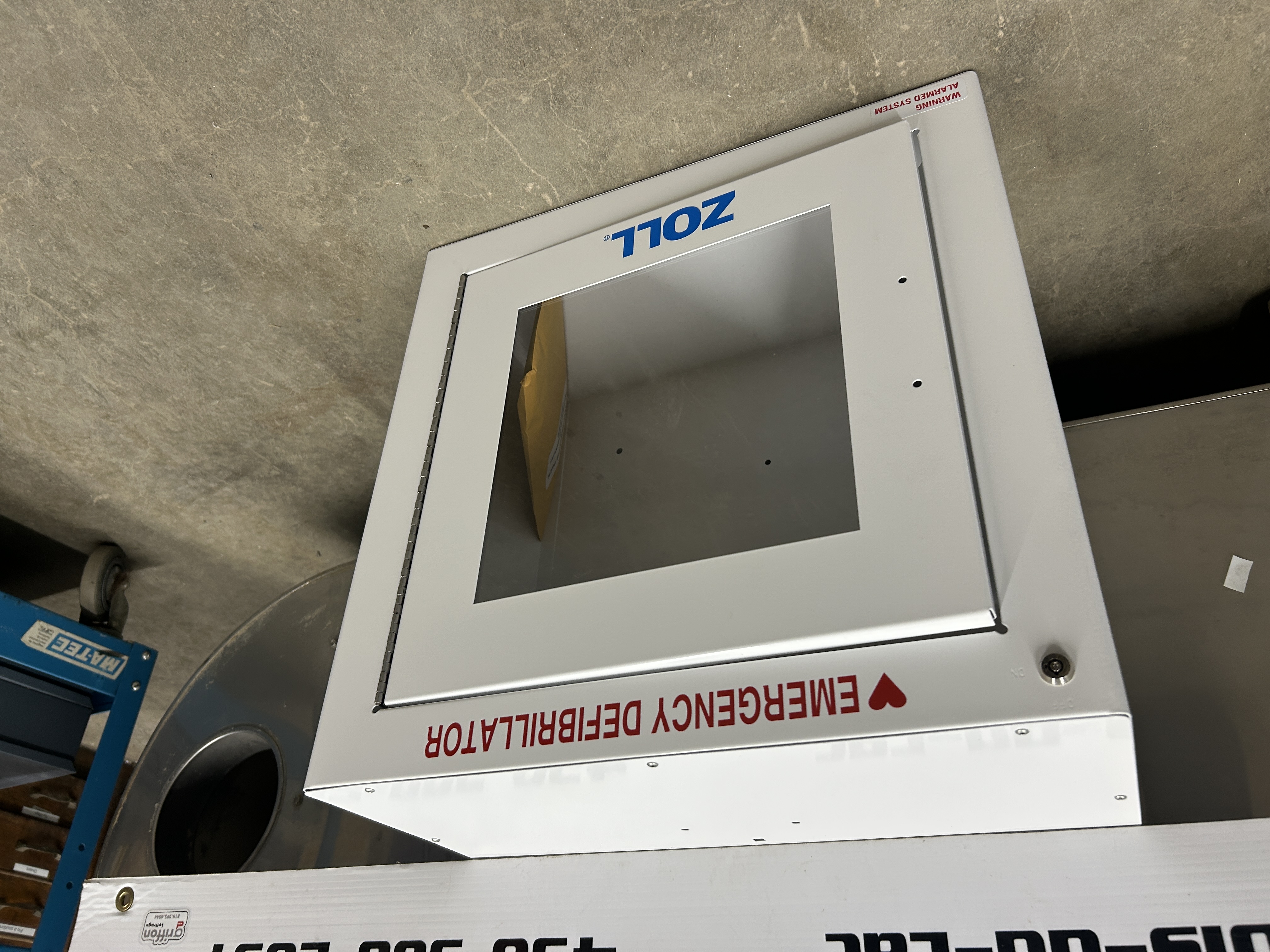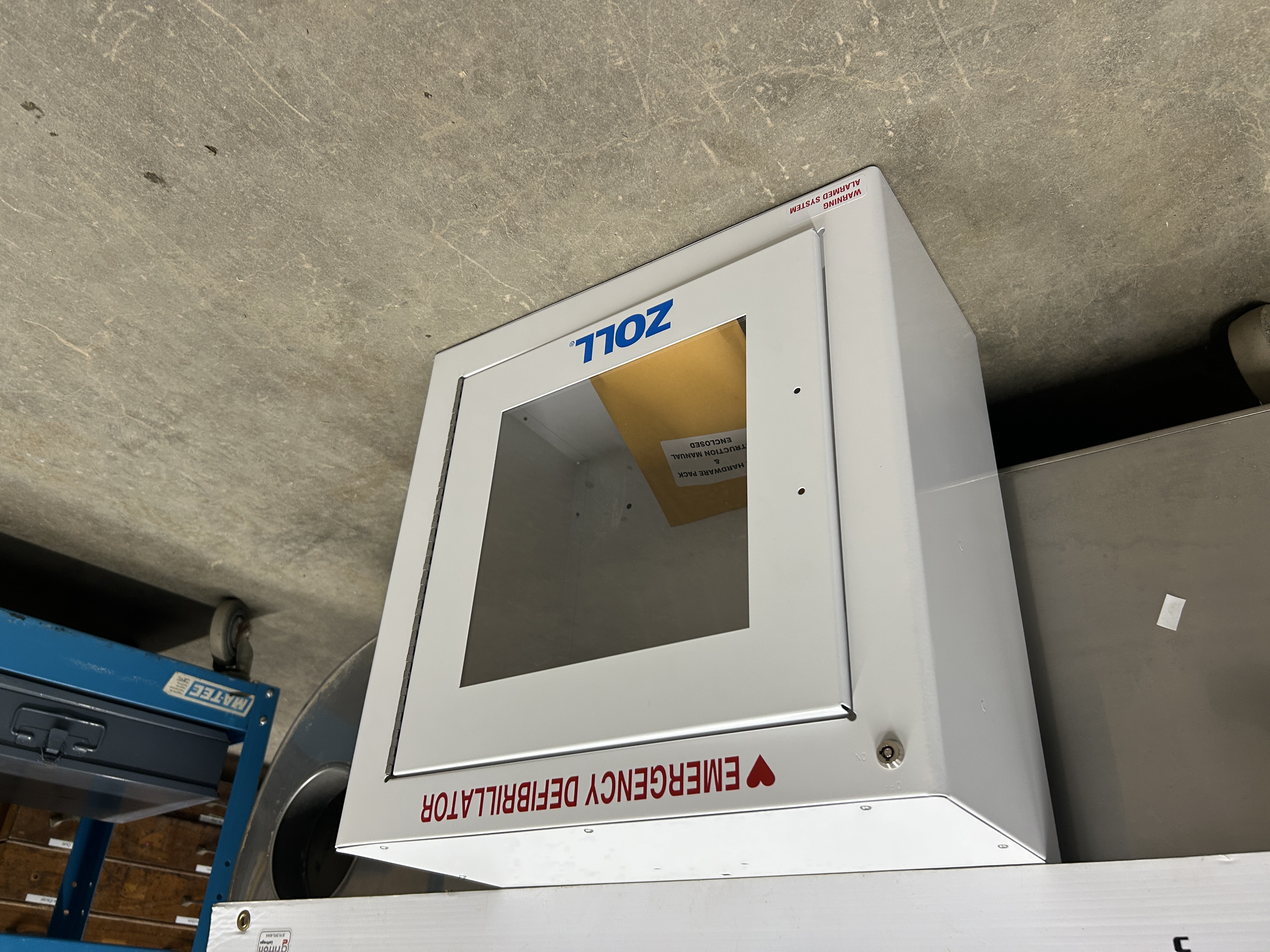 Armoire murale métallique/ Cabinet pour AED avec alarme Dimension: 17 po 1/2 x 9 po x 17 po 1/2 Modèle: ZOL80000855