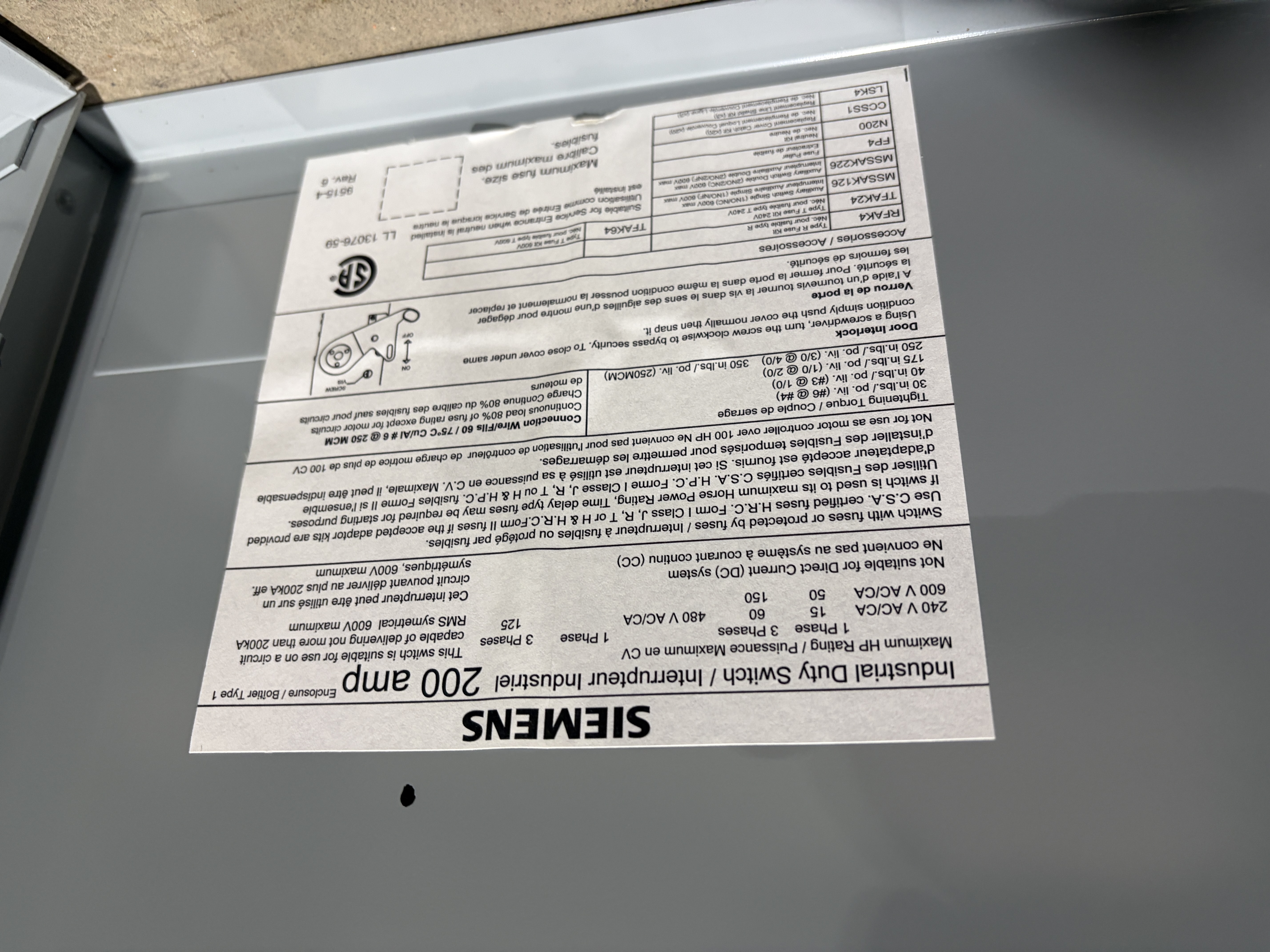 Interrupteur de sécurité 60 ampère, 240 volt ac. Cat. 1632SN
