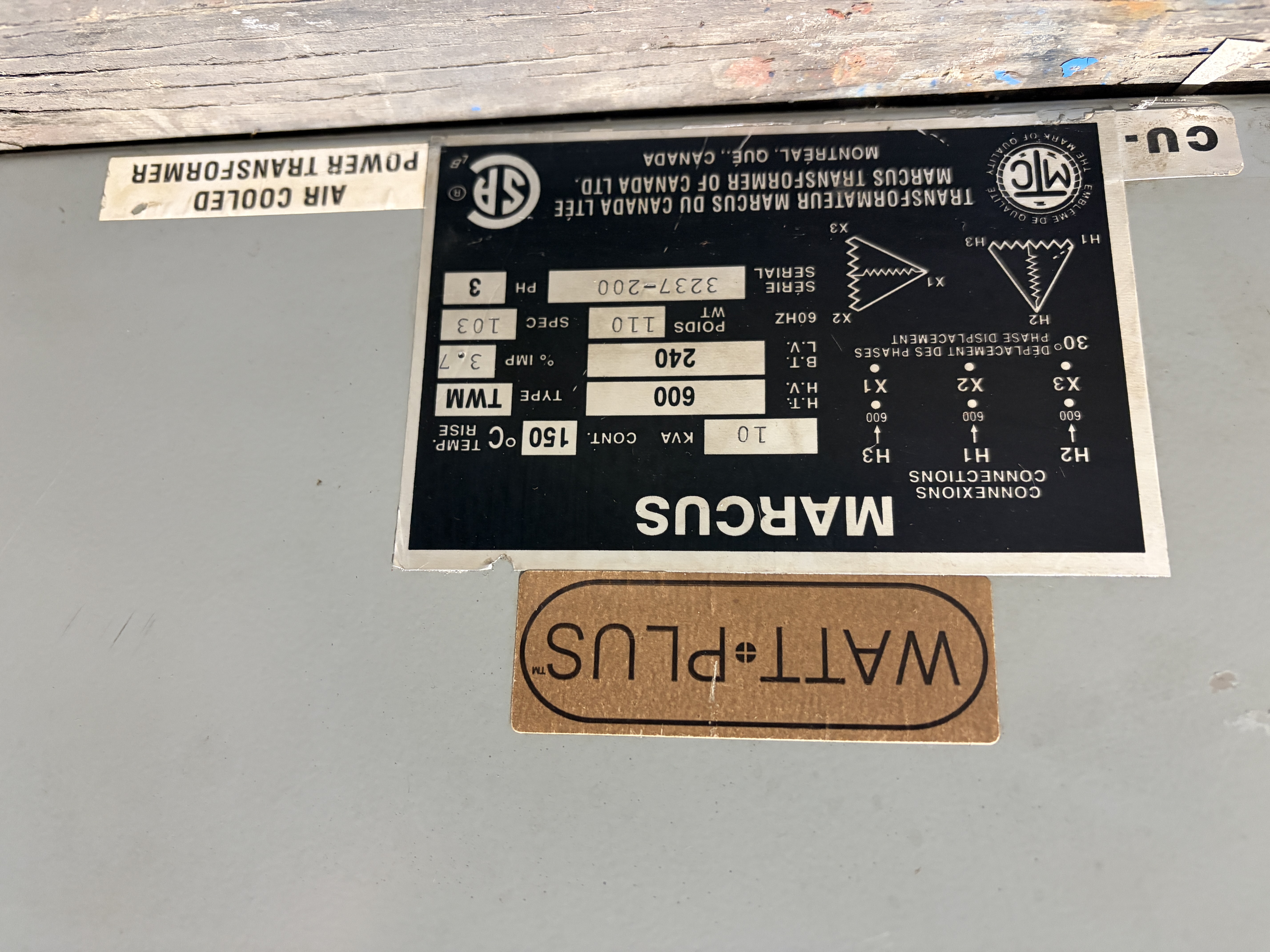 Transformateur Marcus 10 kva 600 240 volt 3 phases