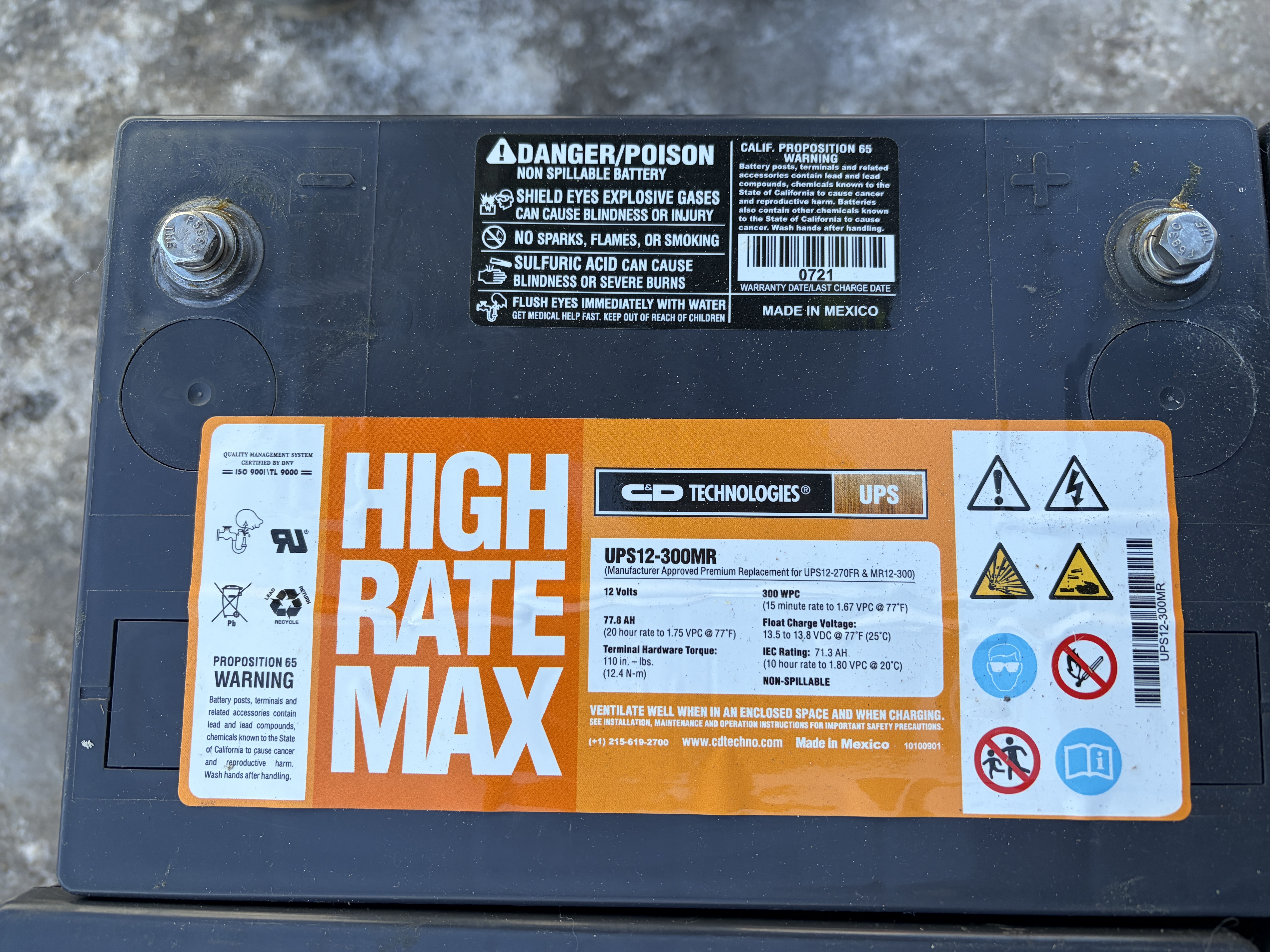 Batterie UPS12-300MR 12 volts, 77.8 AH Batterie chargé *Liquidation*