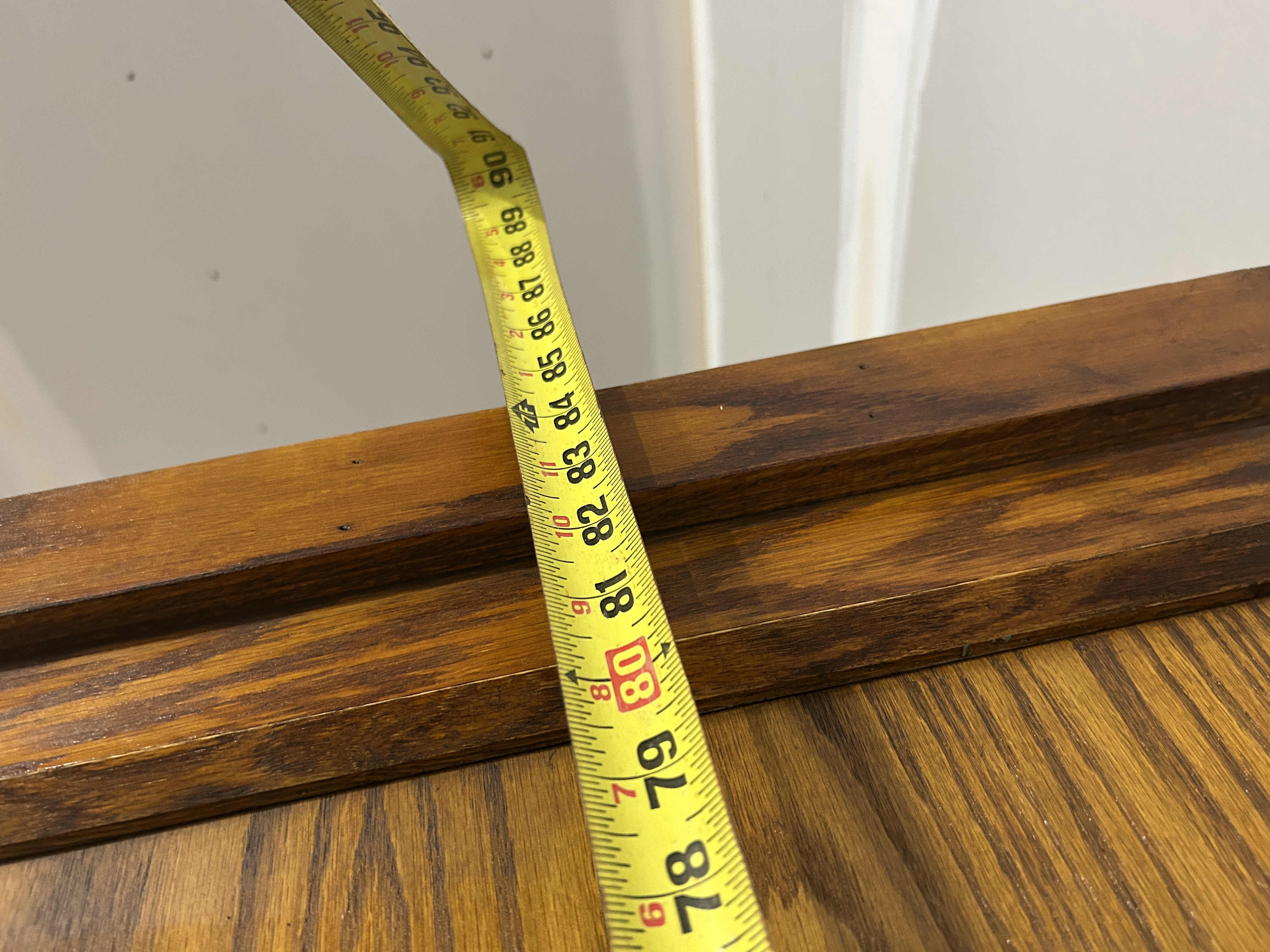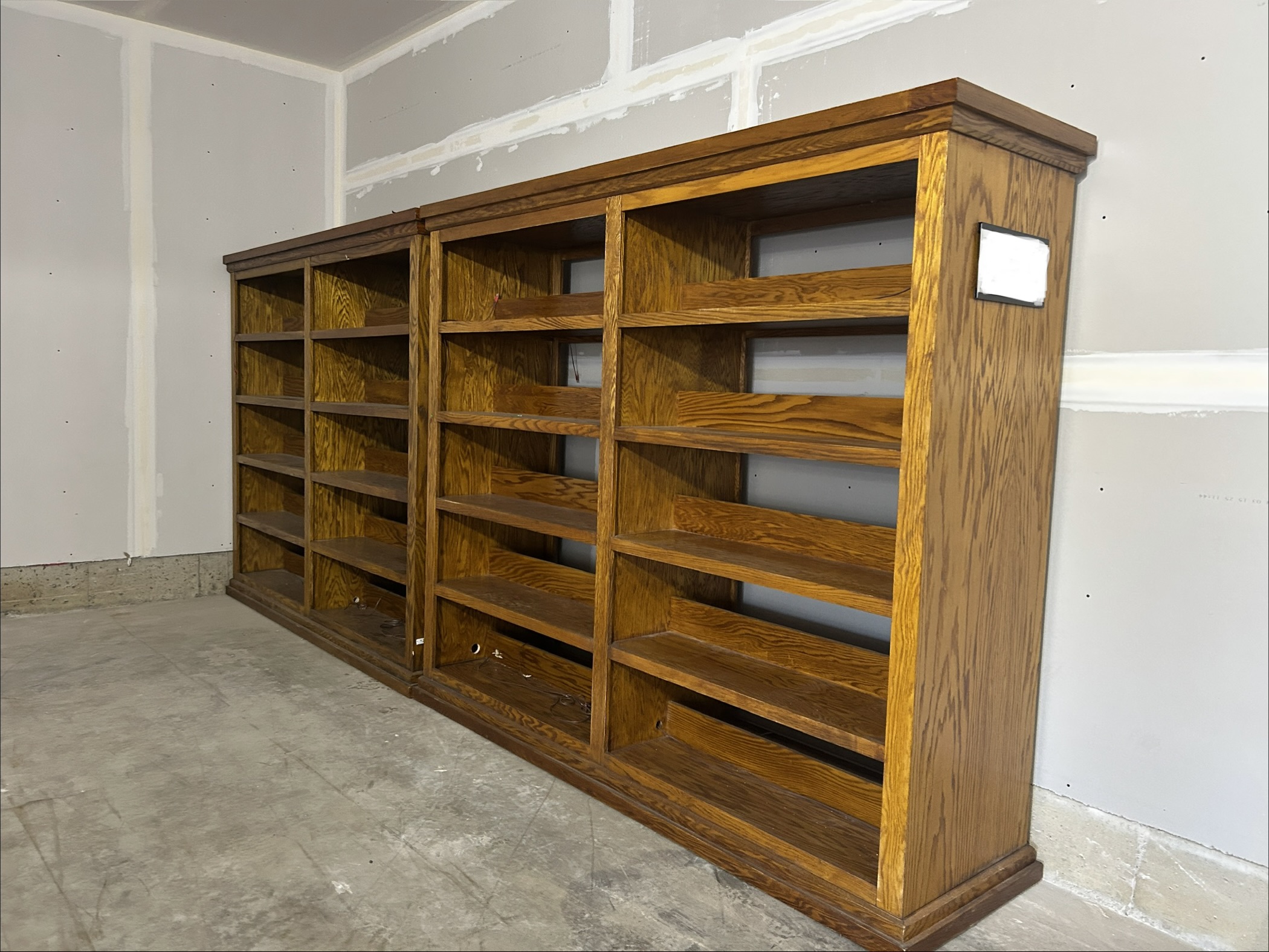 Étagère en bois recto-verso sur roues Dimension: 99 po x 25 po 1/2 x 84 po 1/2 de haut