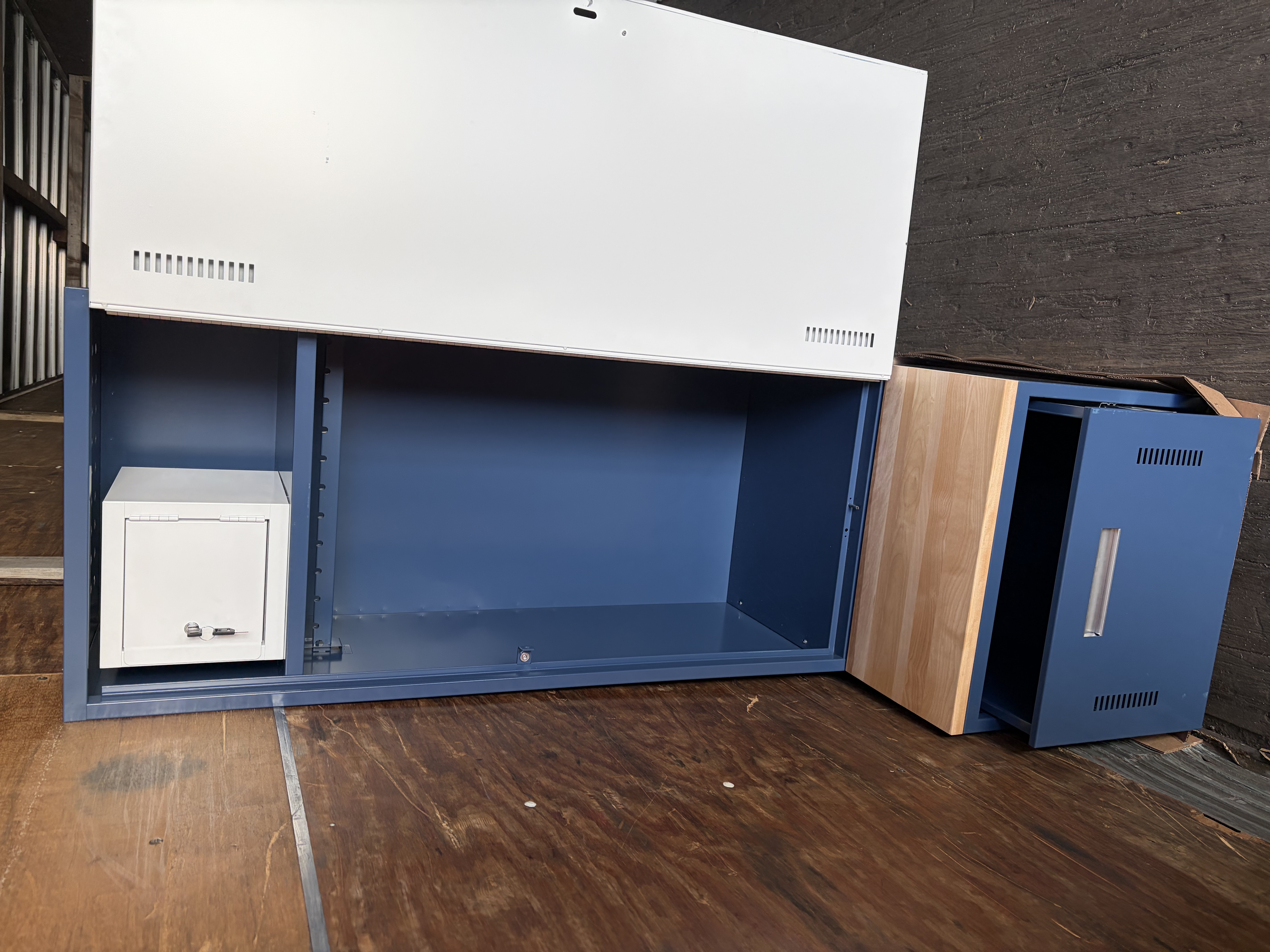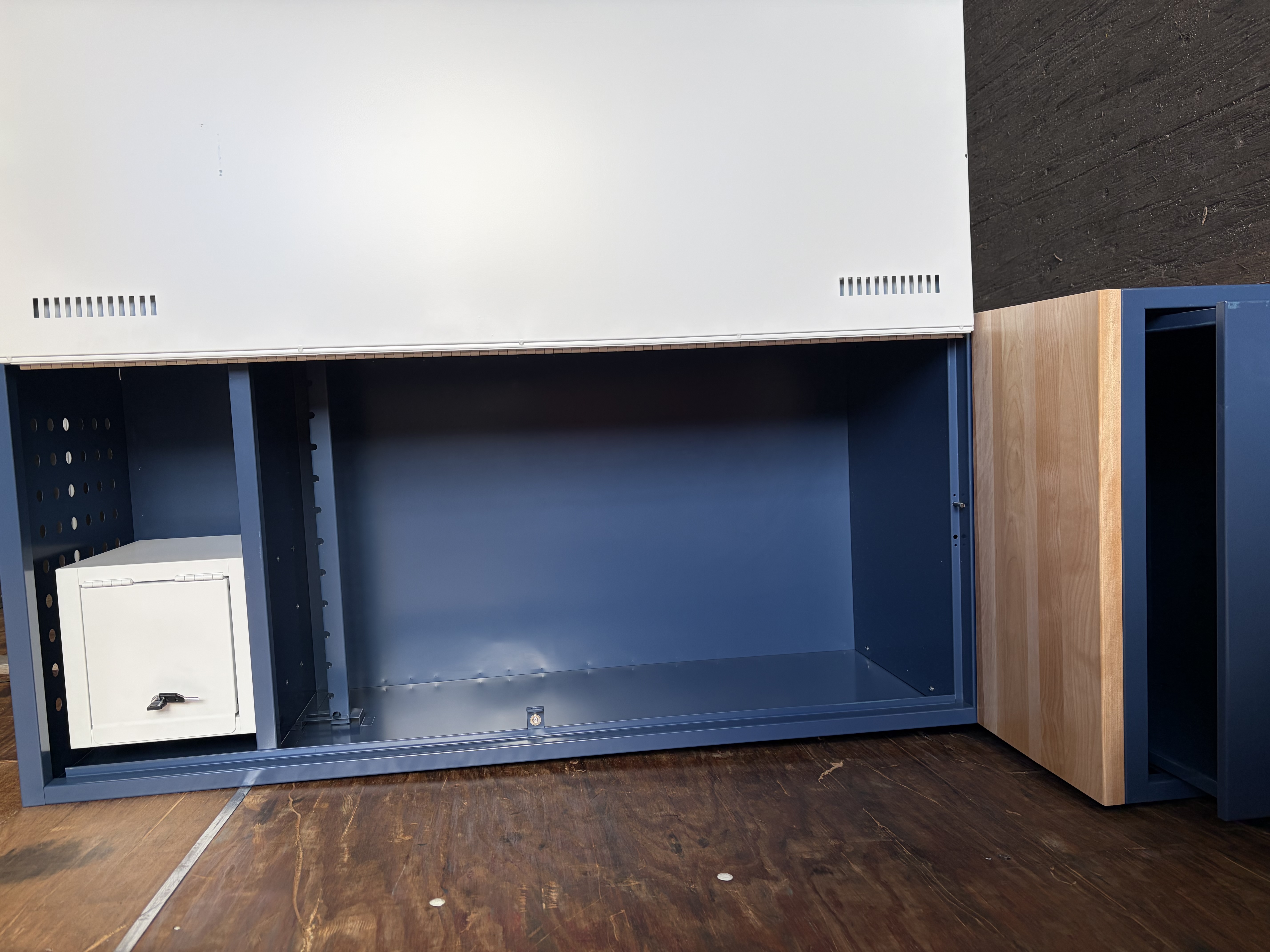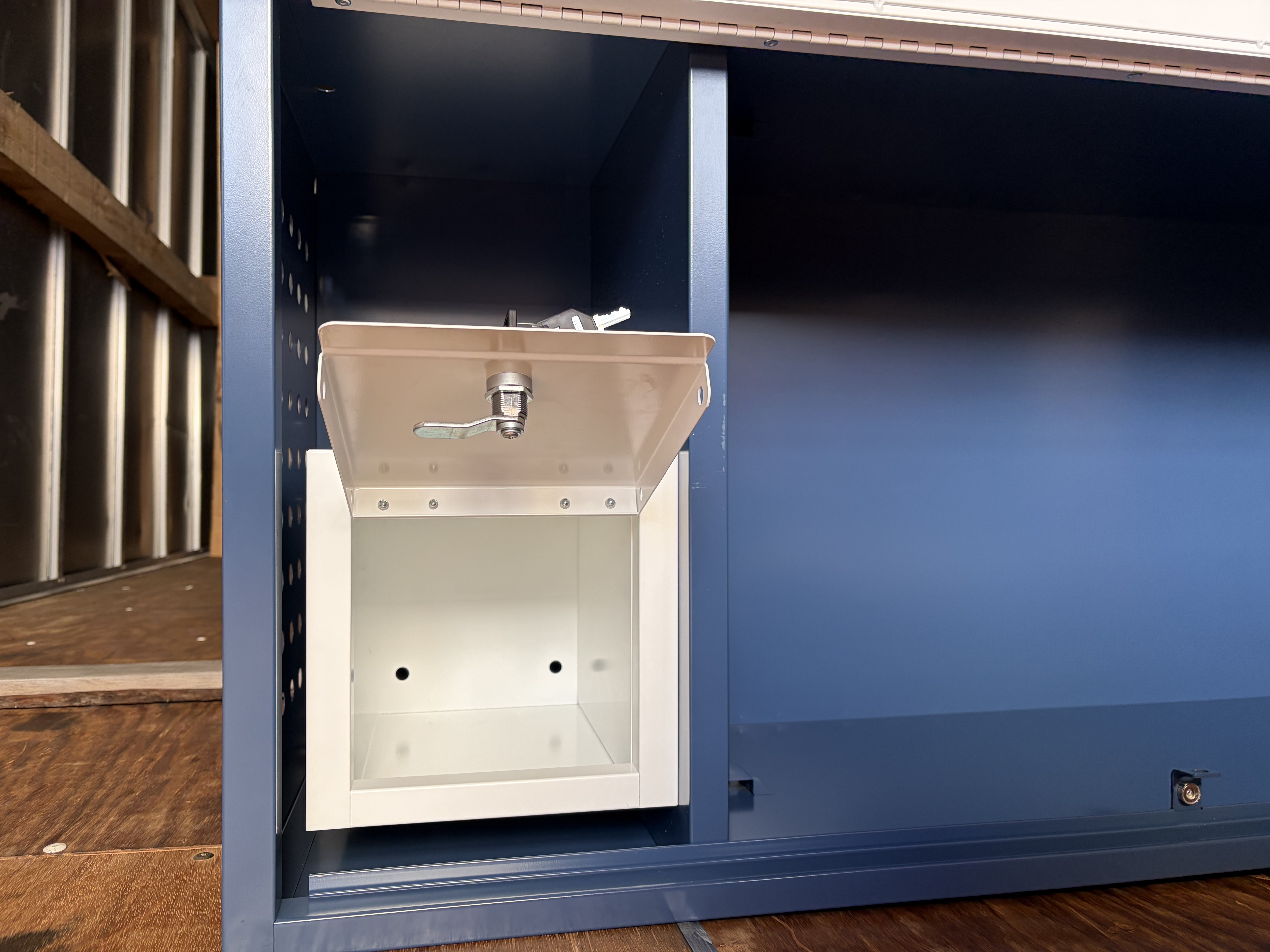 Casier vestiaire 1 porte avec banc et coffret de sécurité Dimension du casier: 24 po de large x 18 po de profond x 72 po de haut Banc: 24 po de large x 30 po de profondeur