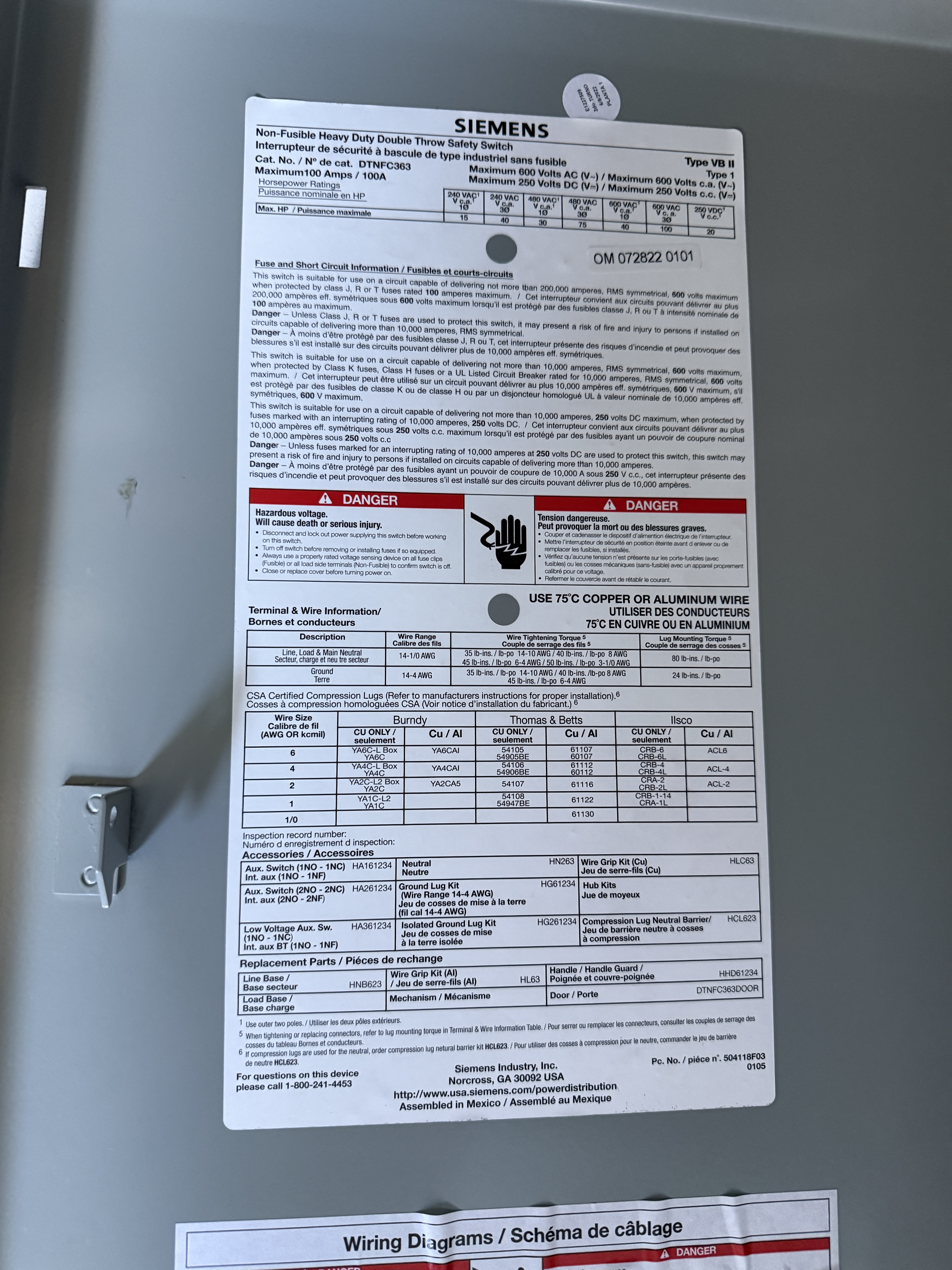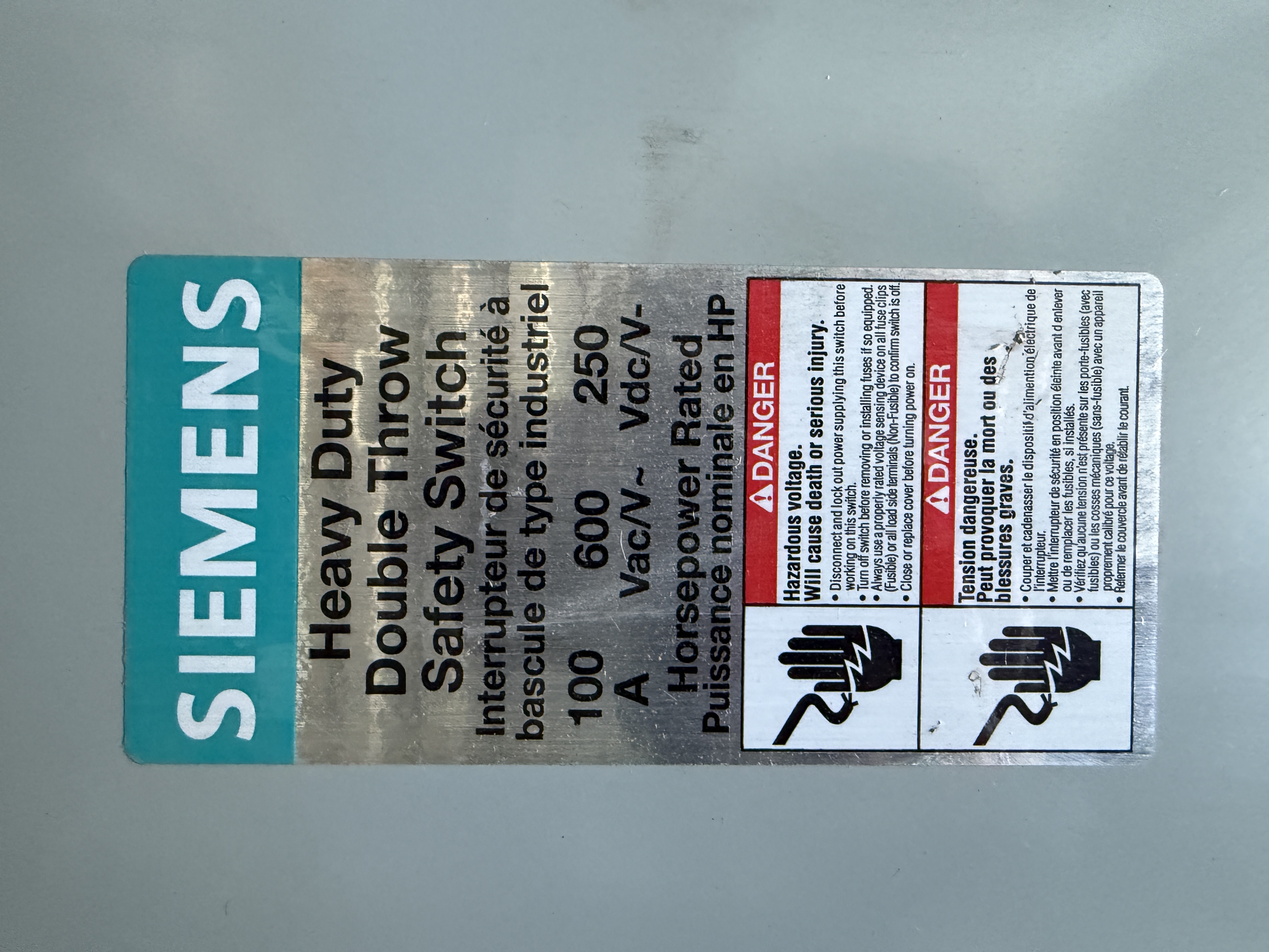 Interrupteur de sécurité à bascule 100 amp, 600 volt ac / 250 dc Cat. DTNFC363