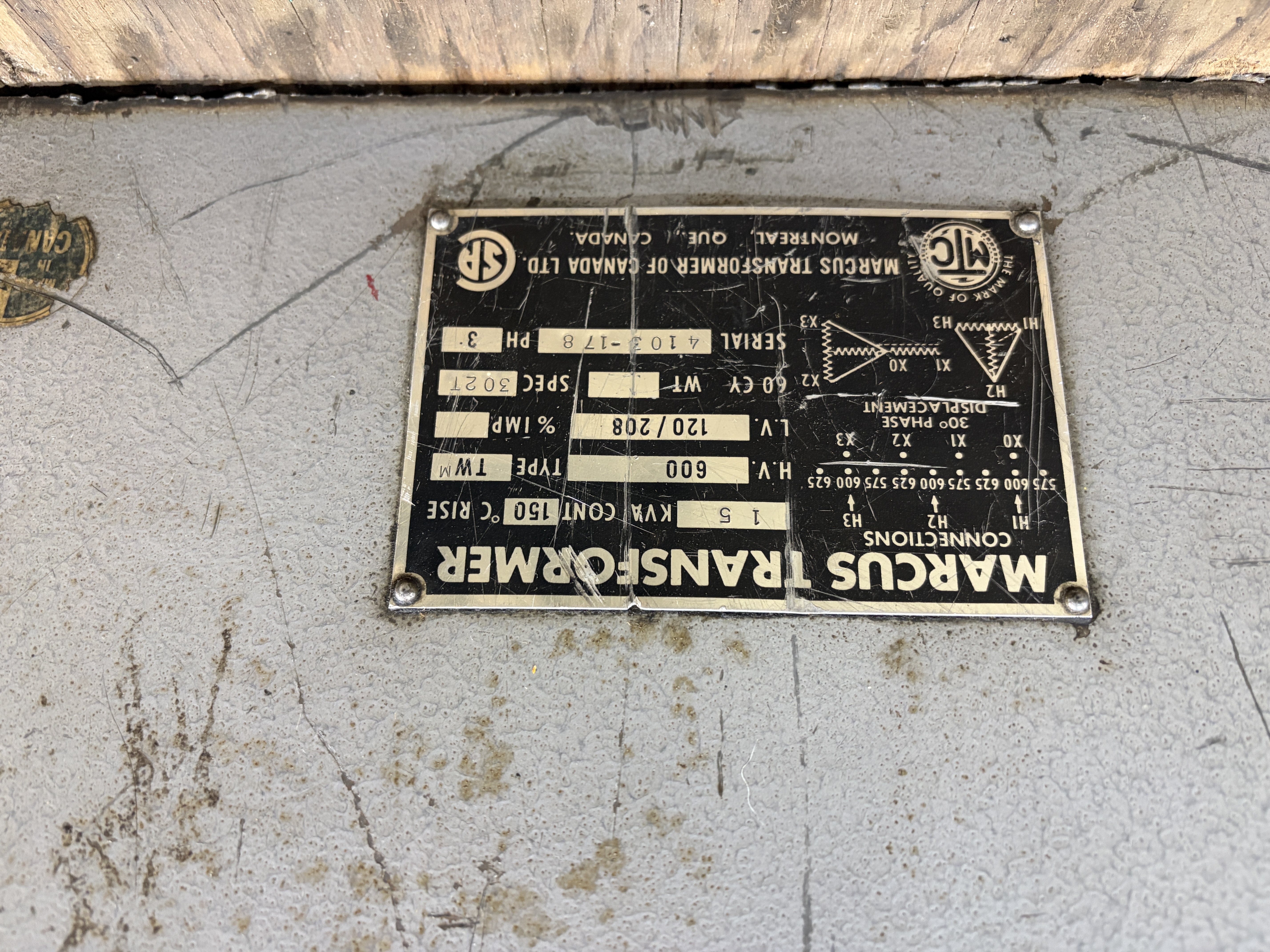 Transformateur 15 kva 600, 120/208 Marcus